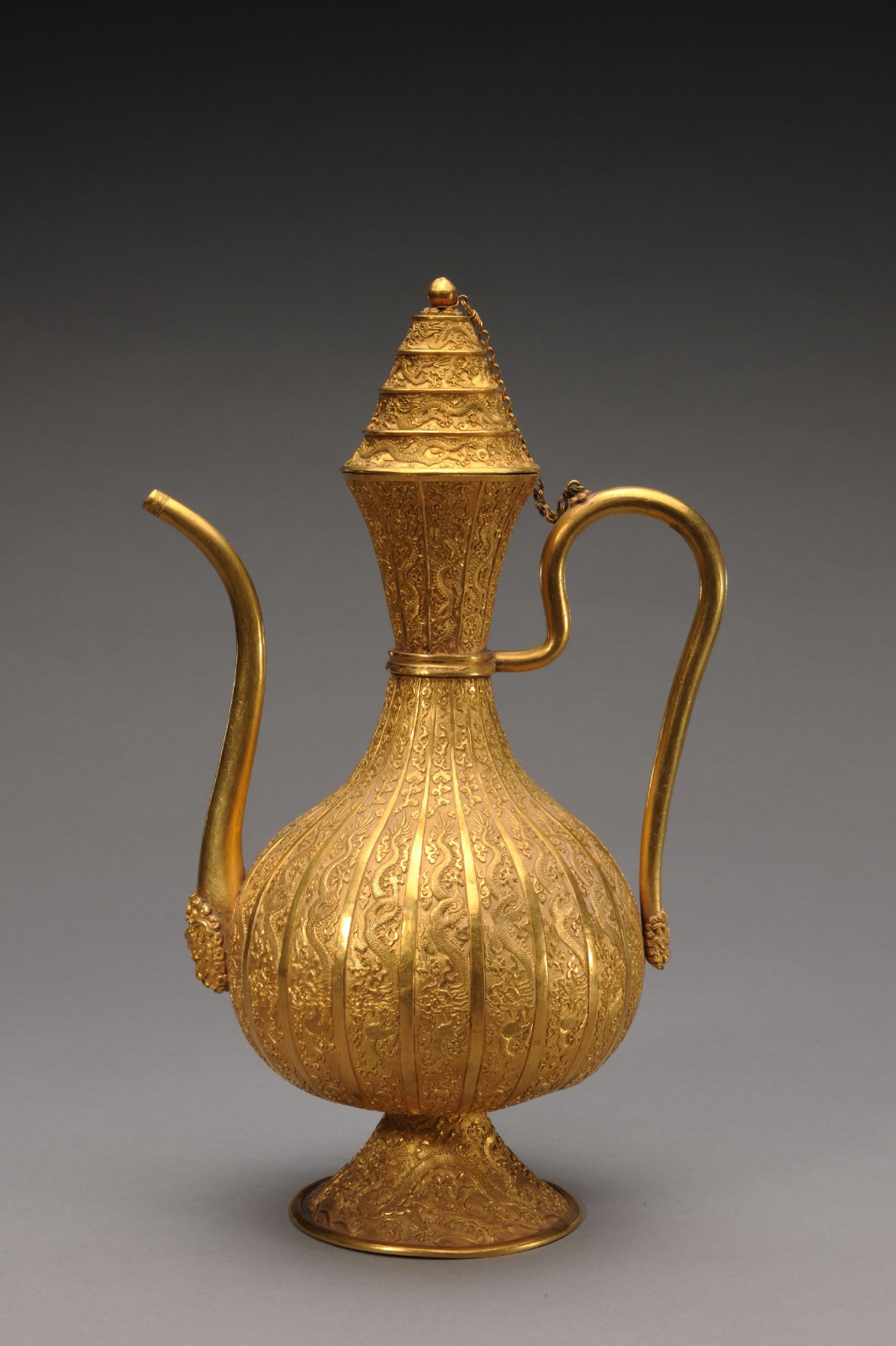 清乾隆金鏨花雲龍紋執壺。(圖:故宮博物院)