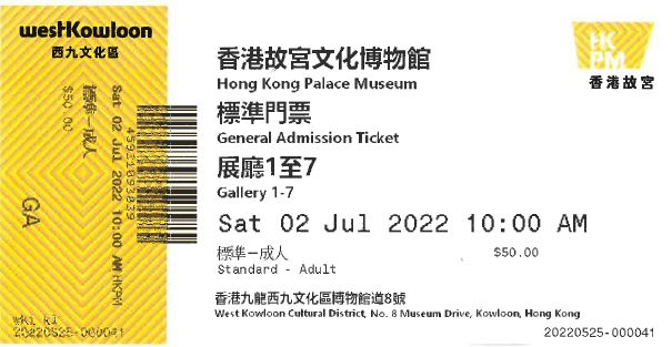 香港故宮文化博物館門票。(圖:香港故宮文化博物館)