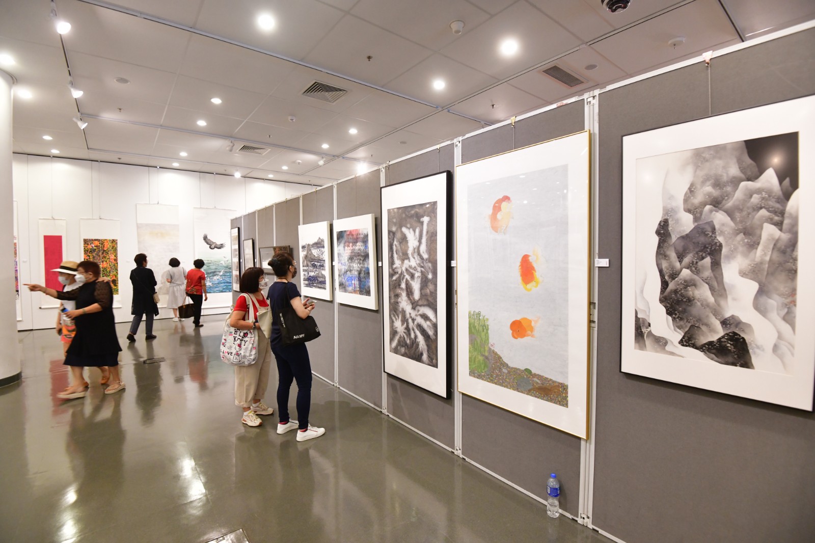 展場展示不同風格的繪畫。
