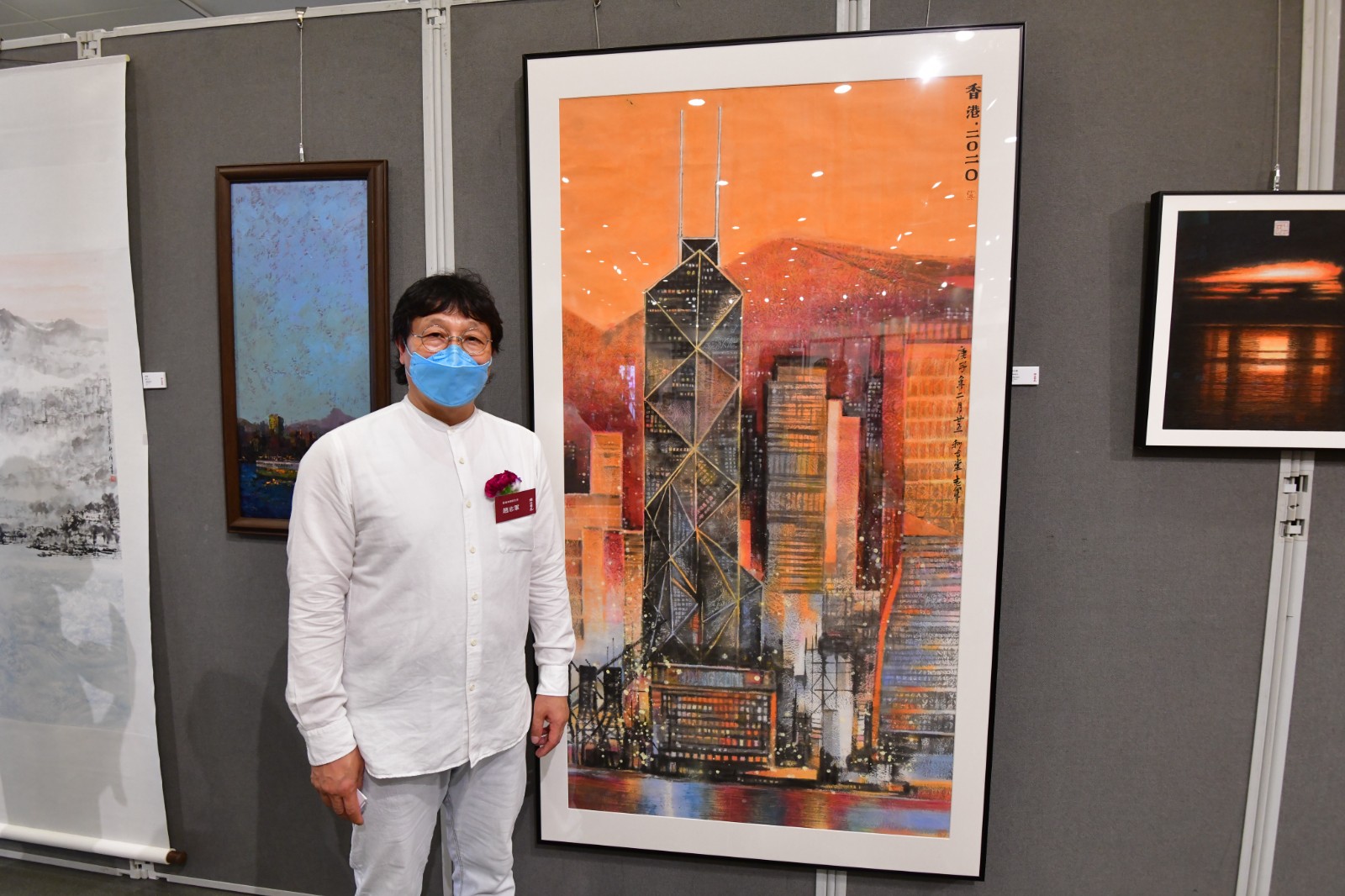 香港美協副主席趙志軍在疫情期間創作了《輝煌時代》,他介紹:「作品主體是香港地標建築中銀大廈,代表中央支持香港,背景的太平山則表達了祝福香港和平、安定祥和的美好願望。畫作的橙紅色主色調既代表早晨的曙光,亦代表霞光,昭示香港回歸祖國25年來持續繁榮發展的城市景象。」