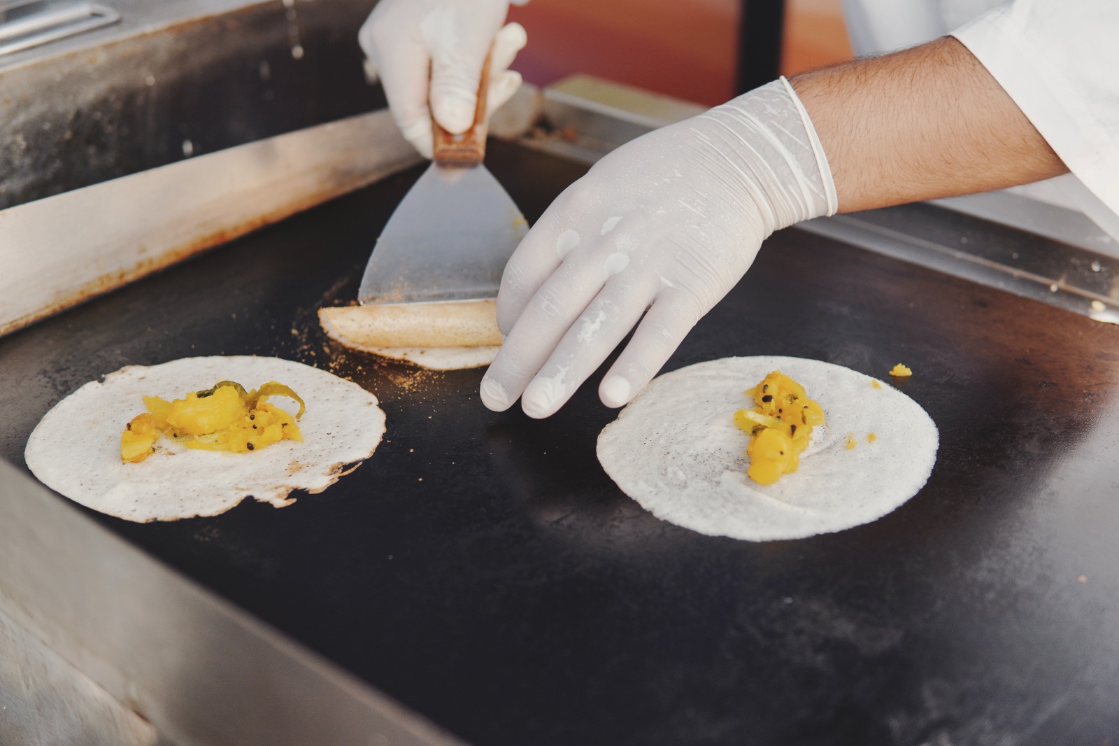 此外,最特別的是餐廳戶外會有廚師即場製作印度街頭小食,包括印度脆餅(Pani Pruri),廚師在空心的油炸球,填上薯泥、洋蔥、番茄、豆類等食物,再澆上綠色的酸湯汁,最後撒上各式香料及配料,味道既甜又酸,夏日享用十分消暑。而印度煎捲餅(Dosa)則由廚師在鐵板倒上米漿攤成一塊薄圓餅,再包入加了香料調味的薯仔泥,新鮮煎好的捲餅香脆可口,濃烈的香料味帶微微辛辣,佐以椰子醬,讓味道更富層次。
