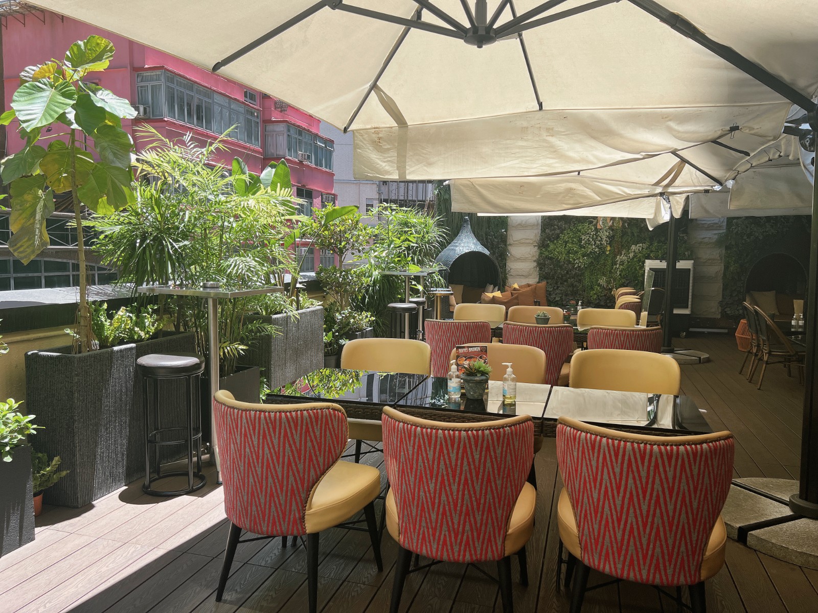 餐廳的戶外綠意盎然,猶如城市綠洲。