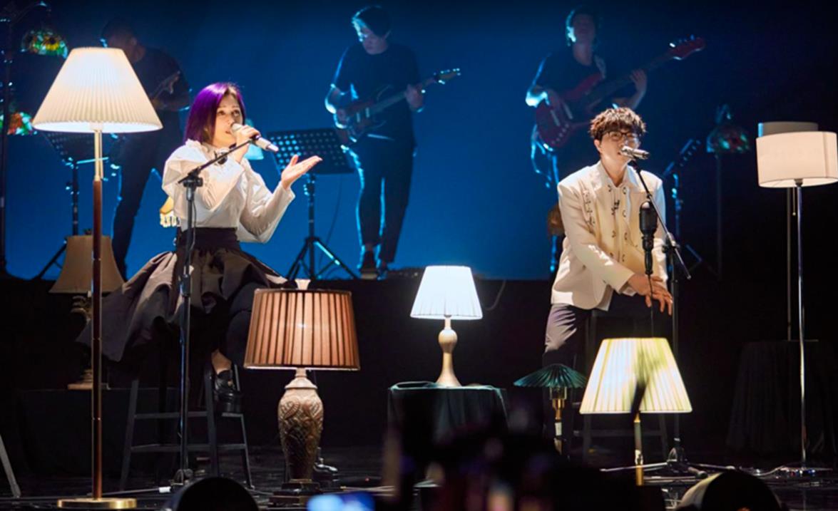 林子祥與單依純合作帶來《千億個夜晚》,林子祥嘹亮的高音和單依純情感充沛的歌聲相融合,將各自的特色都發揮到極致。歌曲中瀰漫著淡淡的寂寥感,但在兩人的演繹之下這首歌變得更加盪氣迴腸,仿佛心中的煩悶都被抒發和排解,兩人彼此在給對方力量。歌曲從平靜到激烈,林子祥和單依純在原曲的基礎上再次升調,高音清亮震撼,一曲完畢仍然餘韻流長。緊接着楊千嬅和毛不易共同演繹《可惜我是水瓶座》,歌聲一響起立馬引發全場大合唱。楊千嬅和毛不易的對唱有著更多的互動感,如同兩種不同的愛情觀在交流,「心裡羨慕有些人,盲目到不計後果」,一個是對歌詞的感同身受,一個則是充斥着迷茫和困惑。楊千嬅和毛不易坐在幽暗的燈光下,充滿敘事感的歌聲訴說著對愛情的理解。