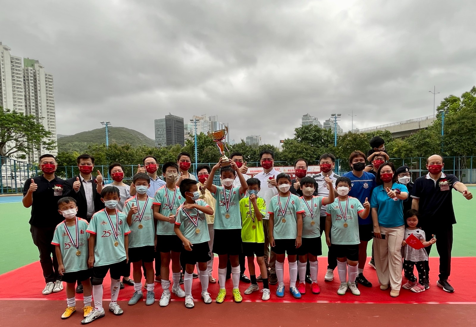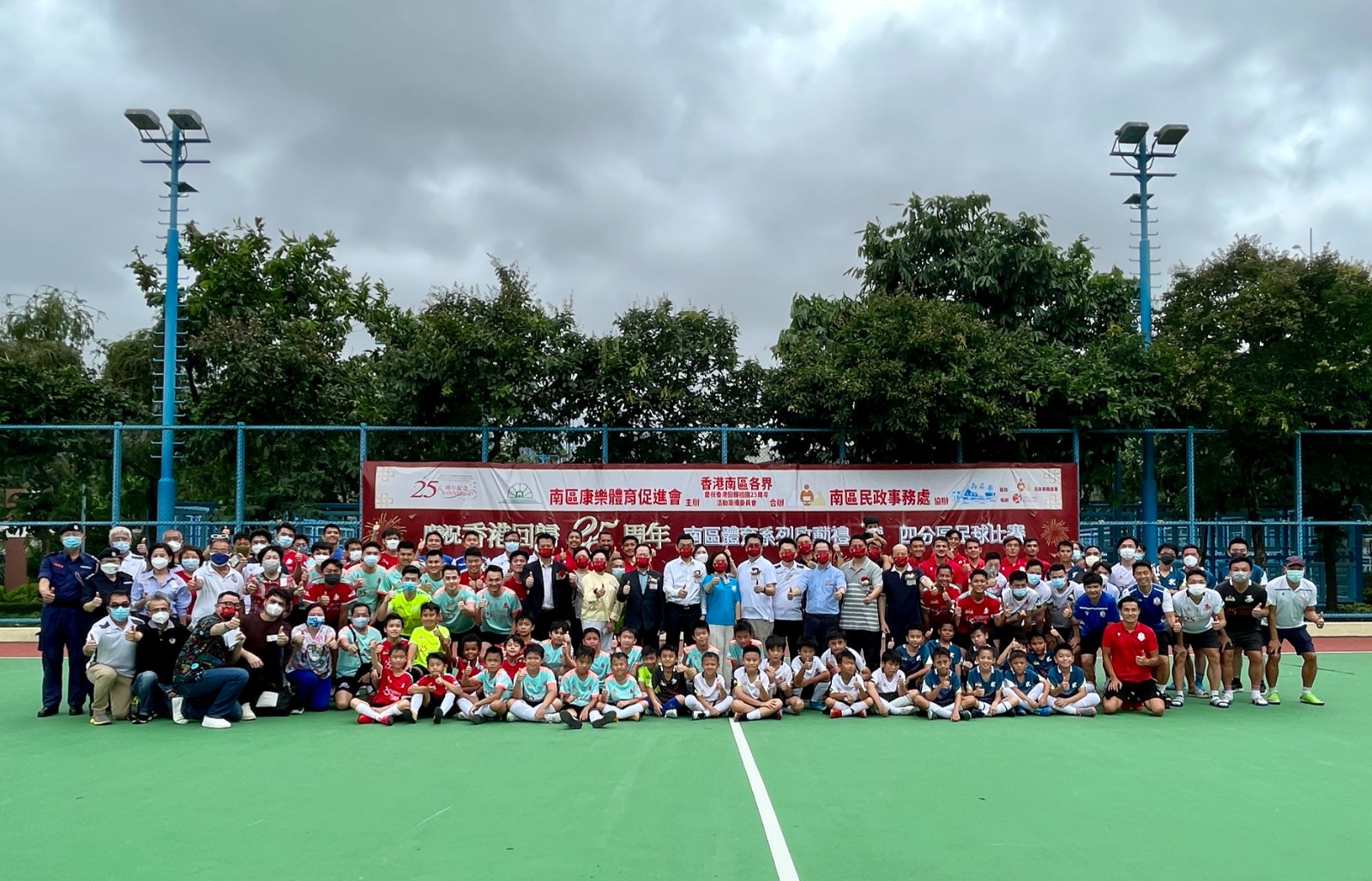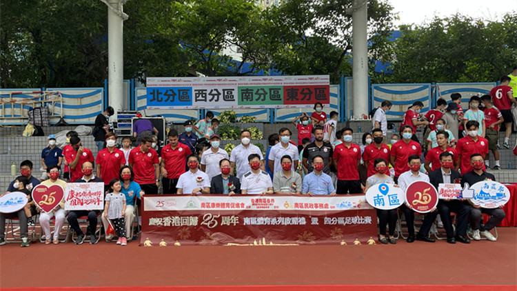 南區康樂體育促進會主辦、民政事務總署贊助的「慶祝香港回歸25周年南區體育系列啟動禮暨四分區足球比賽」於今日(3日)舉行,並邀請到南區民政事務專員鄭港涌、中聯辦港島工作部副處長羅錦輝、立法會議員陳學峰與陳家佩等出席啟動禮。