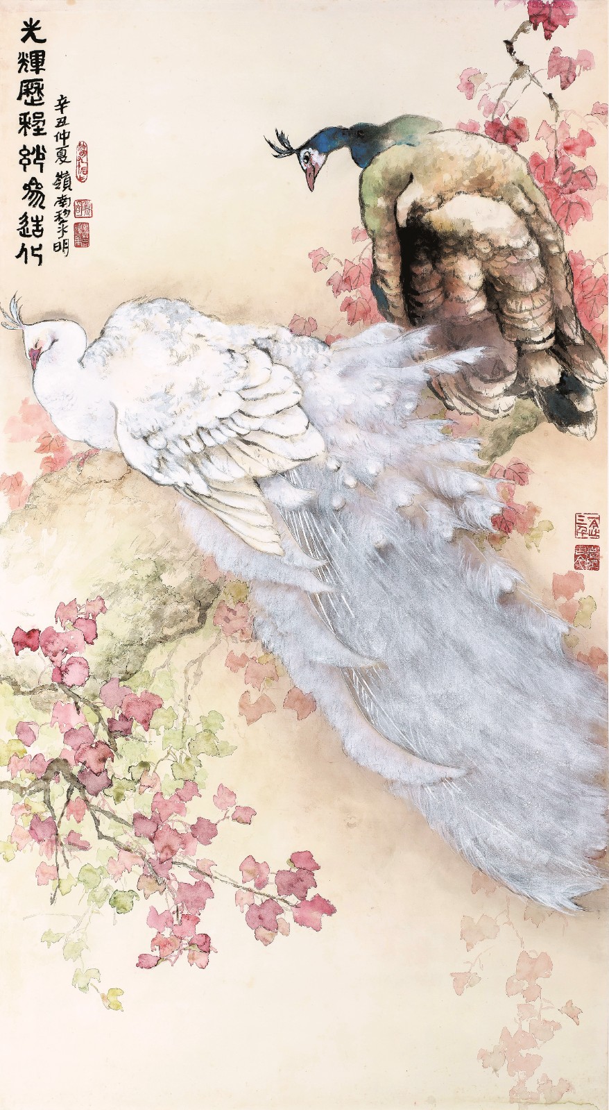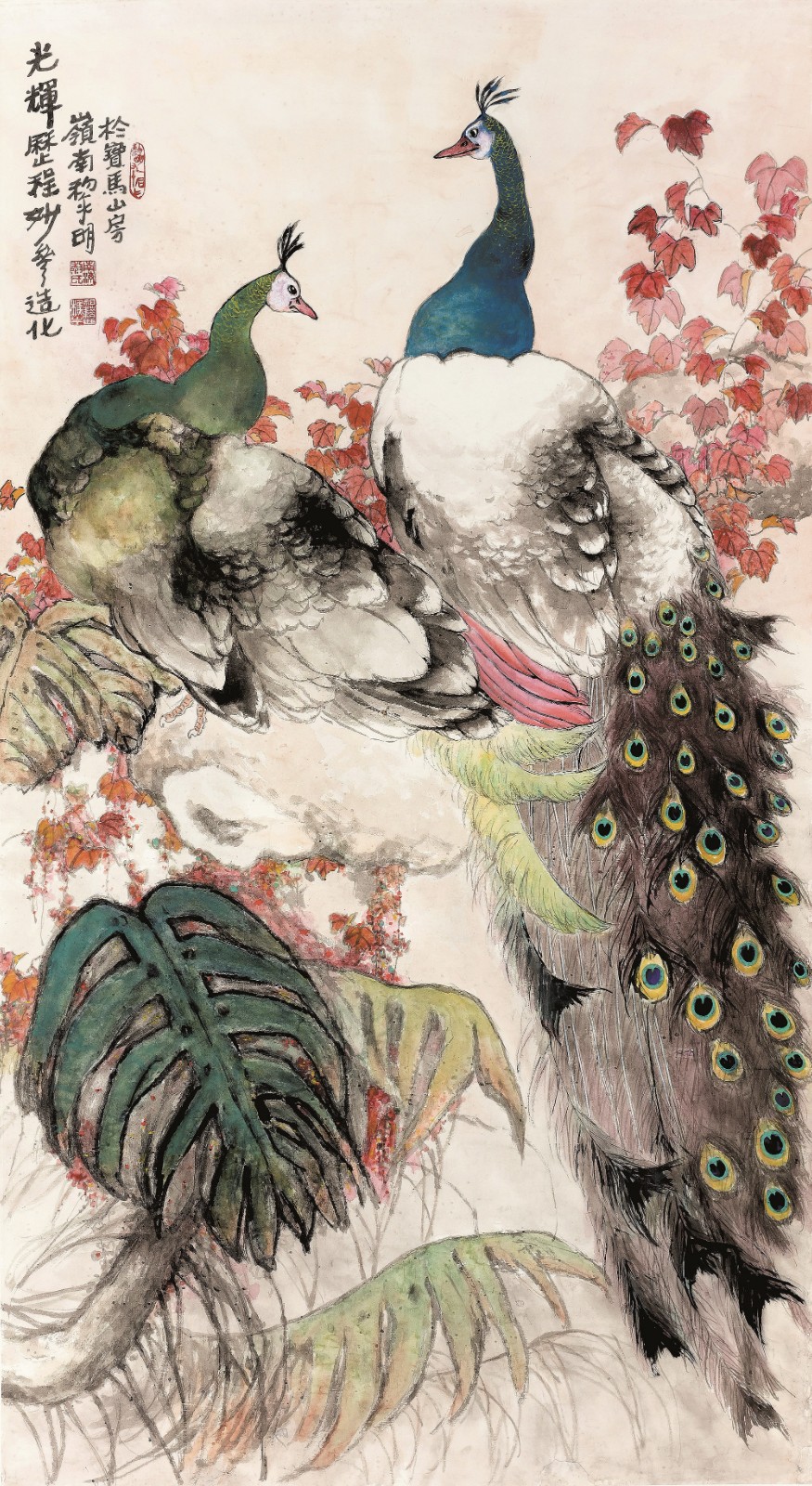 1940年,11歲的黎明成為嶺南畫派創始人之一的高劍父晚年經常帶在身邊、口授心傳、手把手指引的入室弟子兼助手,是現在畫派第二代還健在的嫡傳弟子。在高劍父身邊10多年,耳濡目染下盡得真傳,也在日積月累的不斷修為,煉成卓越的功力及學養,自成其果。黎明精於花鳥,長於山水,善寫人物,兼工帶寫,淋漓暢順,題材廣泛,以善寫孔雀而聞名。他的筆墨生涯中,融會貫通高劍父提出的「折衷中外、融會古今」特點,講求師法自然,靈活生動。「外師造化、中得心源」,把他的意念和意趣傾注在作品上。黎明不忘初心,不忘高師的教誨,在繪畫的道路上不斷前行,把畫派推廣到兩岸四地及海外的地區,薪火相傳。是次在澳門展出高劍父和黎明師徒的作品,是嶺南畫派的盛會,也是歷史的見證。
