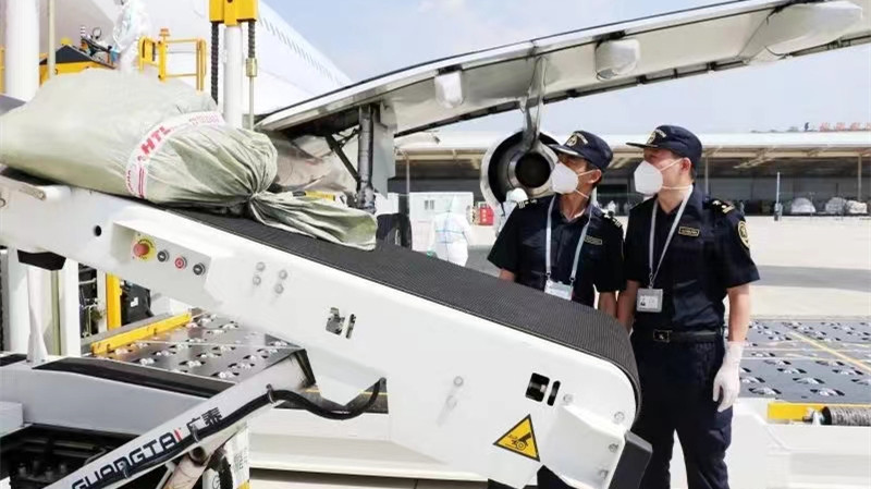 「我們主動對接機場、航空公司,開通航班備案專門通道,開展利用客機運輸貨物的『客改貨』新型載運模式,這對解決運力不足問題起到了良好效果。」煙台海關駐機場辦事處查驗一科科長王國峰介紹。