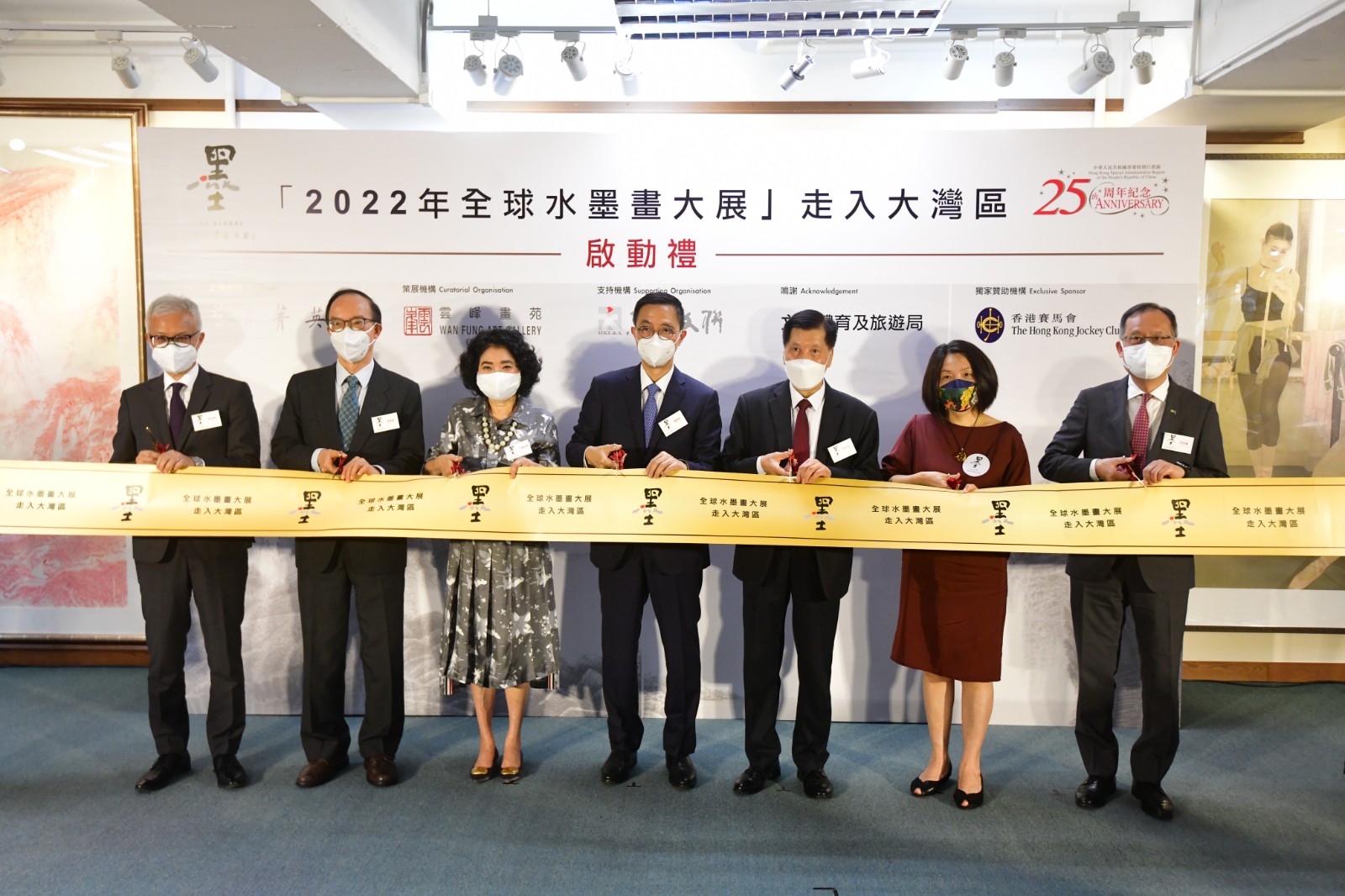 展覽首站的啟動禮邀請了一眾政府官員聯同藝術界及主辦機構代表一同出席,主禮嘉賓包括文化體育及旅遊局局長楊潤雄、藝育菁英基金會主席方黃吉雯、「全球水墨畫大展」策展人郭浩滿、立法會議員及中國文聯香港會員總會會長馬逢國、香港文聯秘書長彭婕、香港故宮文化博物館館長吳志華及香港都會大學校長林群聲。