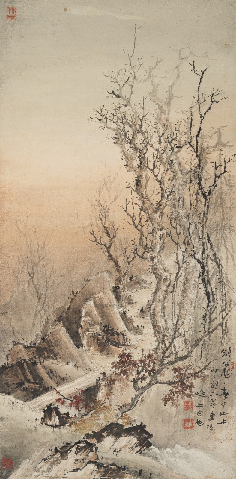 高劍父縱橫於中國、西方與東洋等繪畫,在古今之間反覆觀照,令他更深刻領悟中國繪畫的要旨——筆墨與氣韻,既回應南朝謝赫六法中述及的「氣韻生動」與「骨法用筆」,同時通過唐代張璪提出「外師造化,中得心源」的創作方式,把書畫家的心靈、天分、人格與學養以筆墨與氣韻展現在書畫上。高劍父體會到國畫異於他國藝術的獨特之處,亦為國畫覓得在世界藝術中得以獨樹一幟的立足點。他的《煙寺晚鐘》以西方透視及寫生展現霧中古寺的詩情畫意,其《雪裏殘荷》描寫西湖彈指間的霜雪使荷花凋零錯落,他以書法般放筆直書的筆觸繪畫衰殘的莖葉與蓮蓬,具象與抽象之間借景抒情,讓人感受到他心境的淒冷。《喜馬拉雅山》是高劍父在印度、尼泊爾、緬甸等東南亞國家壯遊後回國所作,此作始於寫生,並以南宋夏圭的斧劈皴描繪山勢,用白色凸顯高光之處,增加視覺對比,又以日本畫技法渲染背景、南亞勝景為題材,是將各國藝術特色共冶一爐的經典之作。