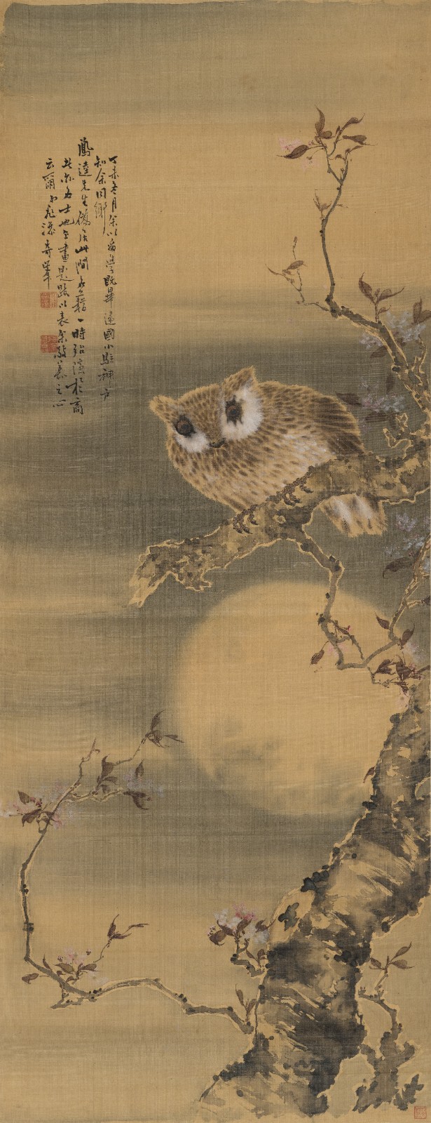 高劍父的五弟高奇峰繪畫天分極高,高奇峰早年跟從四兄高劍父習畫,其後隨日本著名畫家田中賴璋學習,接觸西方寫生、光暗、遠近等技法。展品《鴞月圖》及《孤猿啼雪》是高奇峰早年赴東洋深造後的代表作。無論是鴞與猿猴的輪廓、形體、神態都繪畫得細緻入微。他用水墨渲染出月色朦朧的氣氛,並以白粉彈落在枝幹及孤猿的毛髮上凸顯冰雪透出的寒意,畫面甚有興味,令人百看不厭。