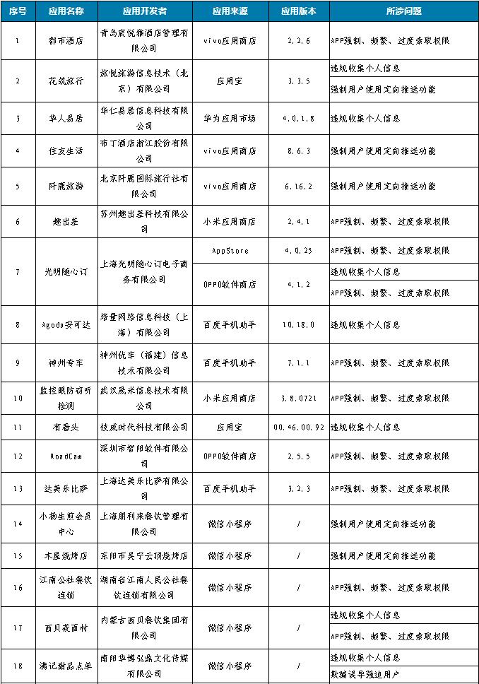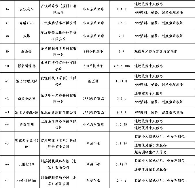 通報顯示,依據《個人信息保護法》《網絡安全法》《電信條例》《電信和互聯網用戶個人信息保護規定》等法律法規,工信部組織第三方檢測機構對群眾關注的酒店餐飲類、未成年人應用類等移動互聯網應用程式(App)及第三方軟件開發工具包(SDK)進行檢查,對發現存在侵害用戶權益行為的共227款App(SDK)提出整改要求。截至目前,尚有47款App(SDK)未按要求完成整改(詳見附件),現予以通報。具體名單如下: