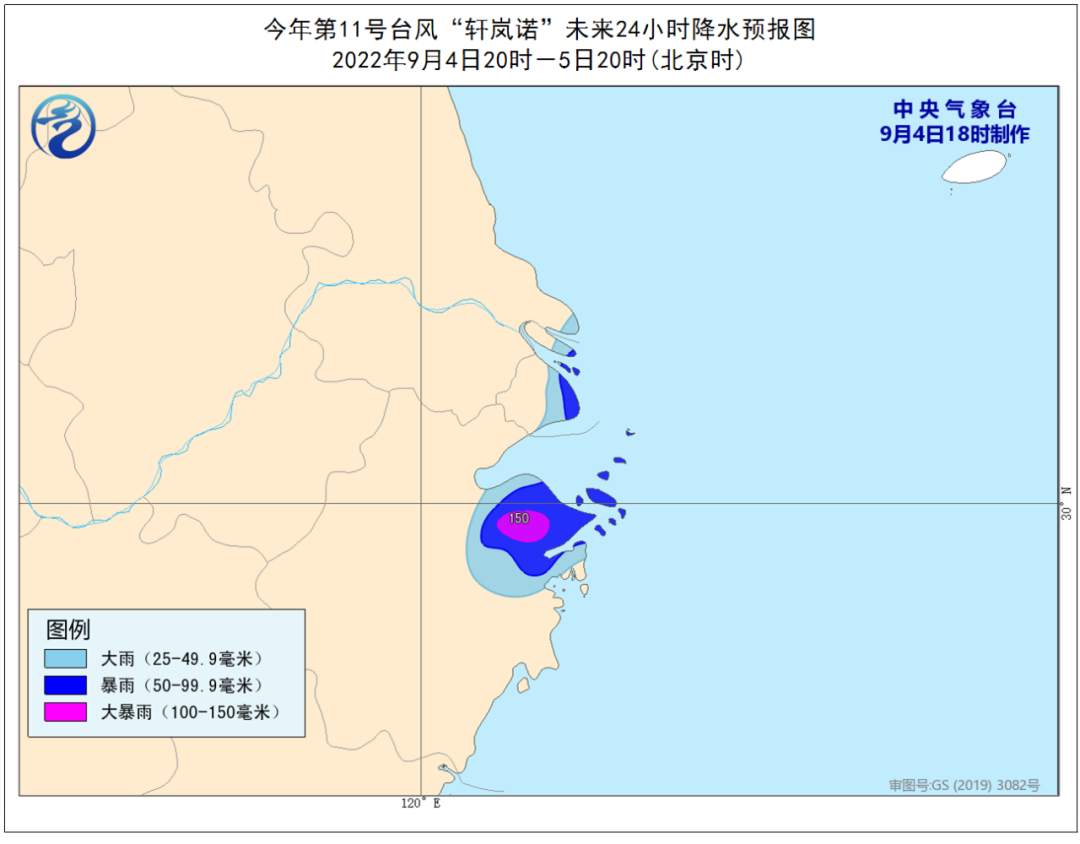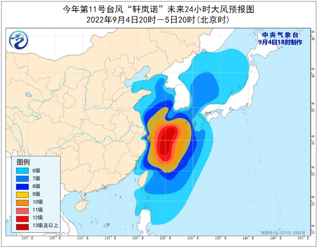預計5日早晨離陸地最近,之後轉向東北方向移動。6日開始,華東地區的風雨將明顯減弱。