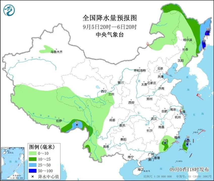 需要注意的是,6-7日,颱風北上後可能併入西風帶的冷渦系統中。吉林東部、黑龍江東部和北部出現明顯降雨,部分地區可能會有暴雨。