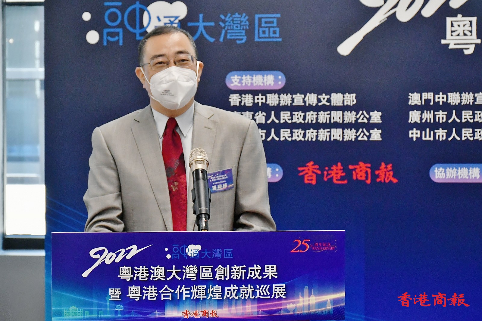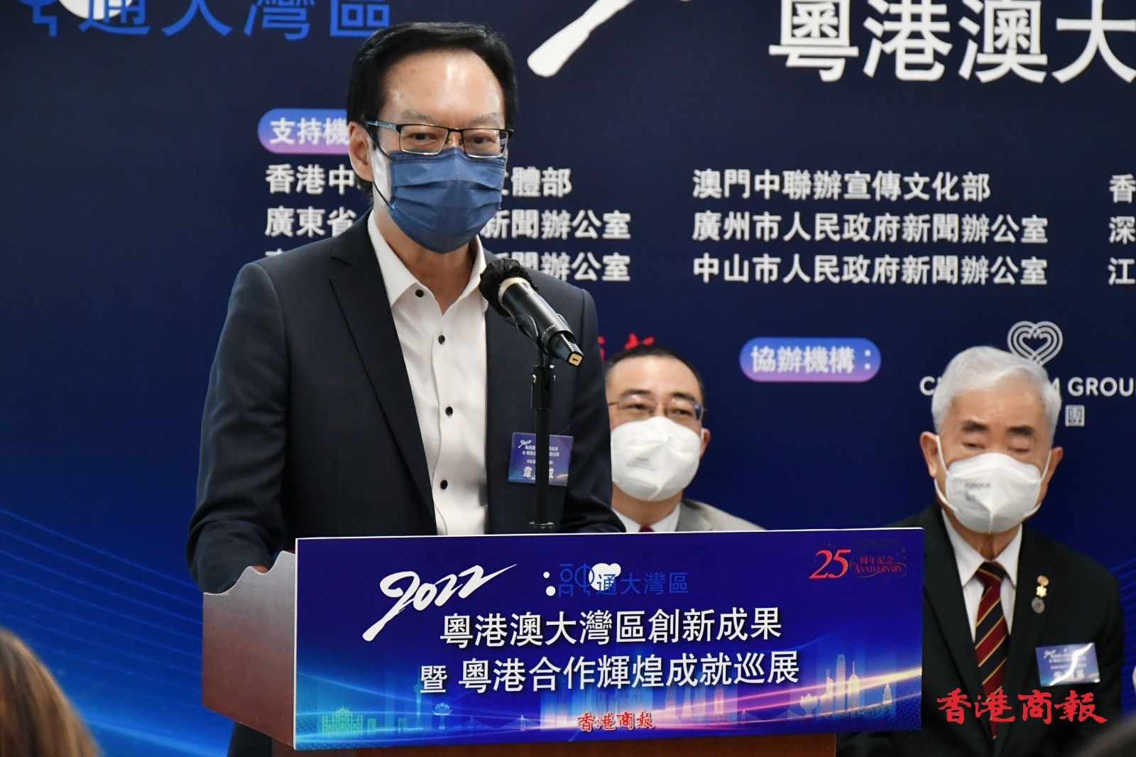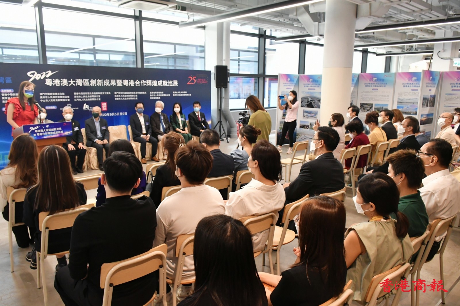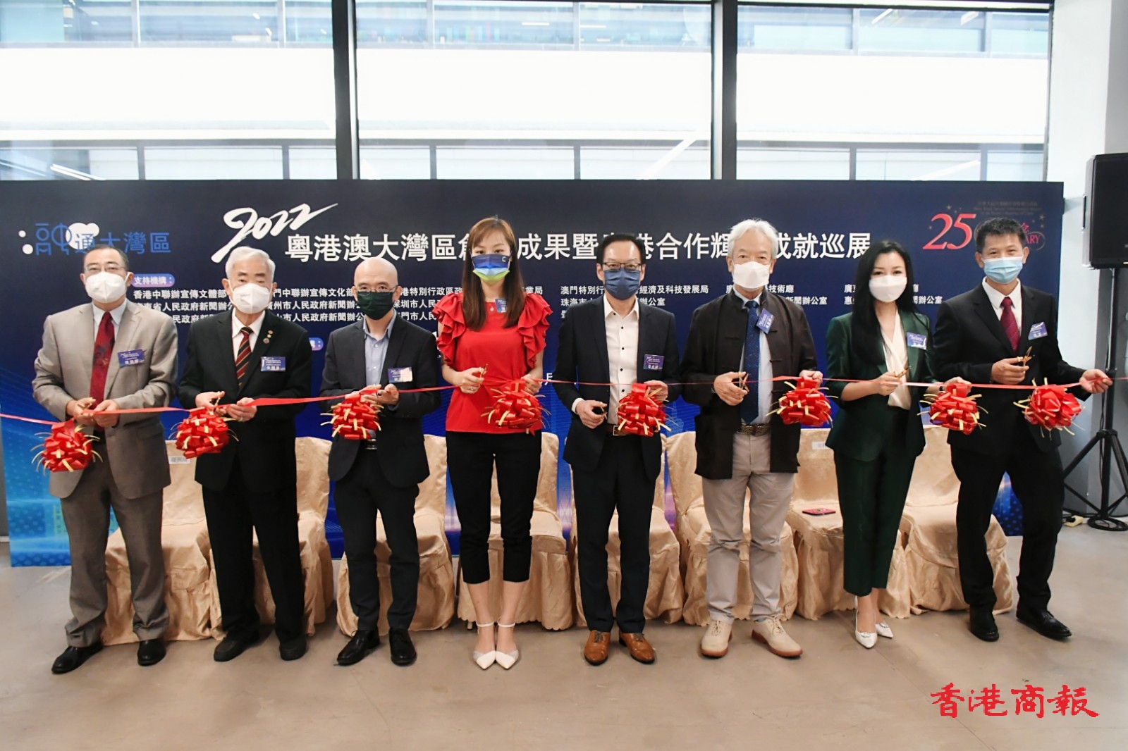 由香港商報承辦的「2022粵港澳大灣區創新成果暨粵港合作輝煌成就巡展」香港站一連五日在港舉行,今日(5日)在中環街市舉行開幕式,創新科技及工業局副局長張曼莉、市區重建局行政總監韋志成、華懋集團業務轉型及創新總監胡達明、香港中華廠商聯合會副會長黃家和、香港中華出入口商會副會長朱國基、香港島婦女聯會主席金鈴、香港商報執行總編輯羅興輝及香港商報副總經理徐文等擔任主禮嘉賓。