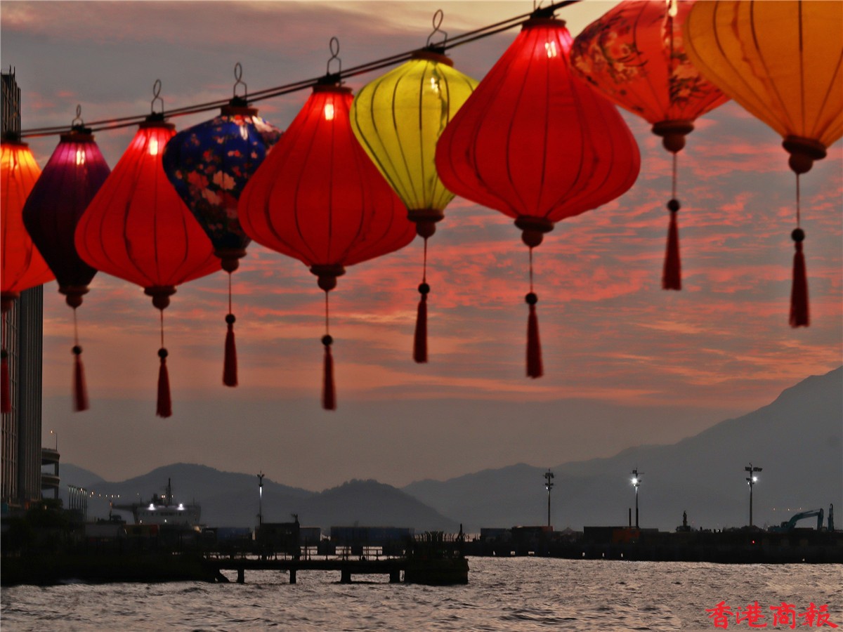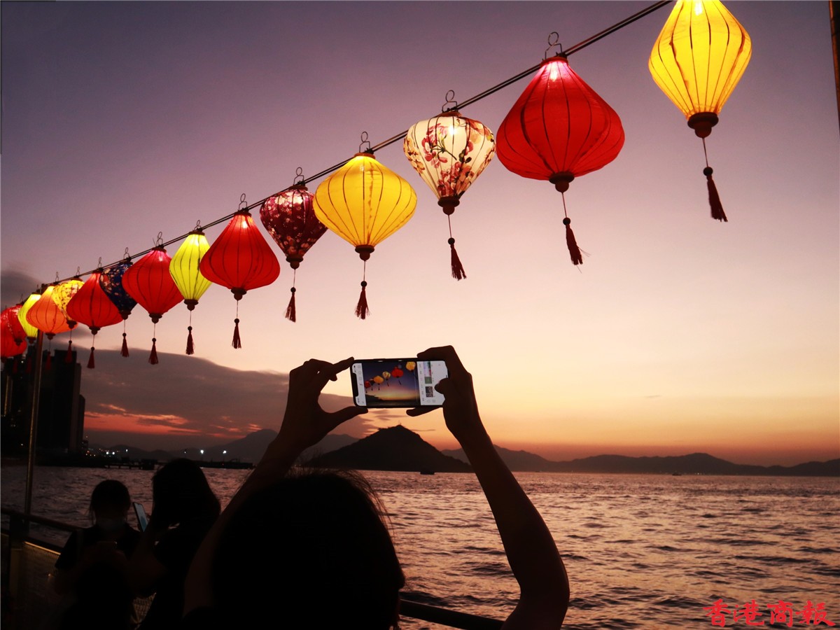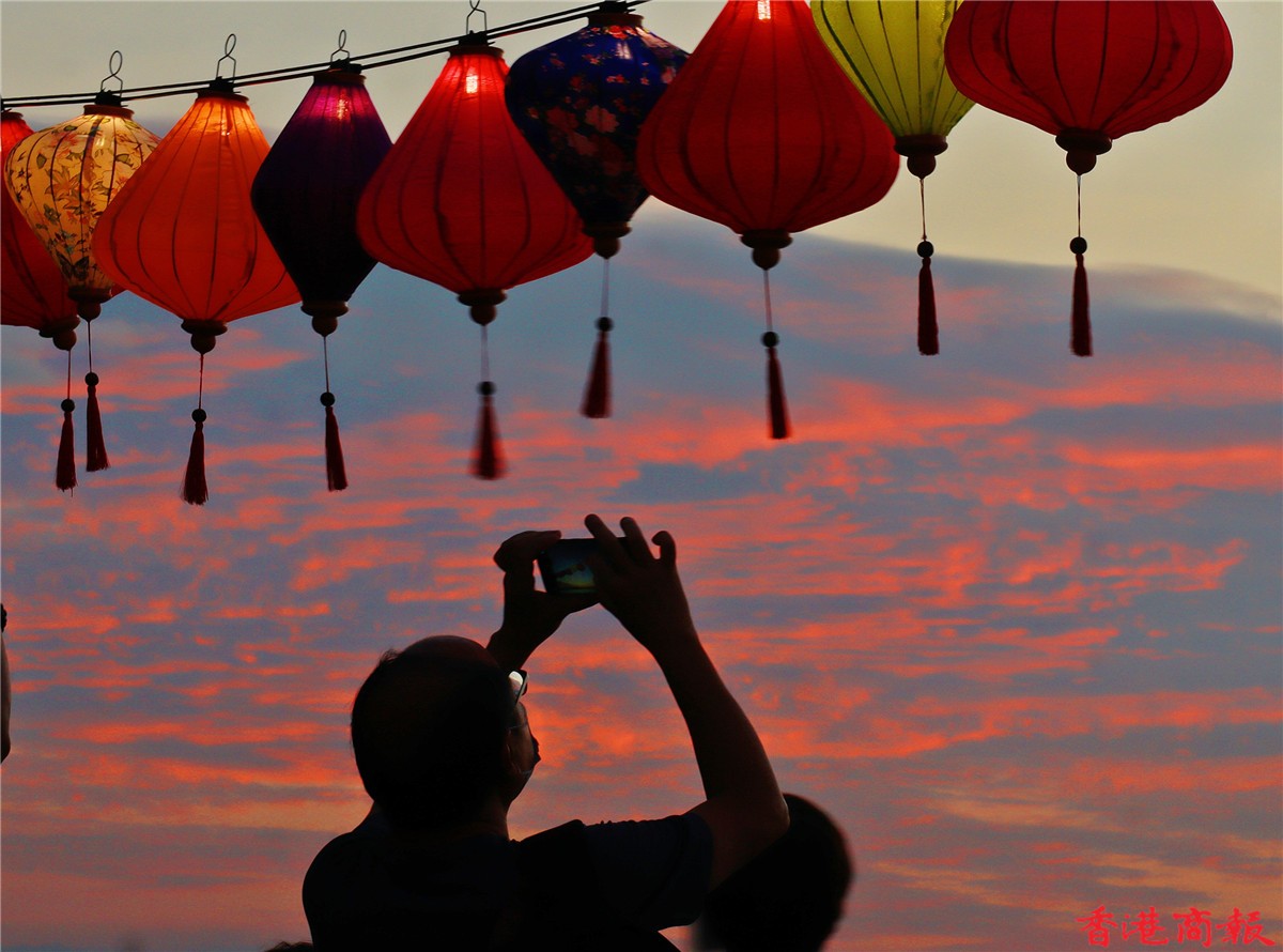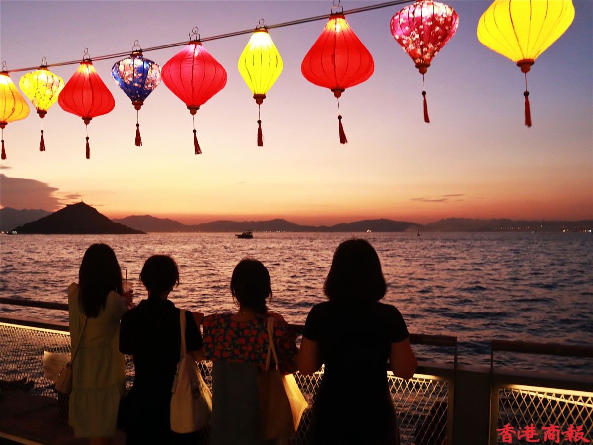 卑路乍灣海濱長廊是著名日落打卡聖地,黃昏時分,日落的餘光照射落大海,配合剛剛亮起的燈籠,雖沒到中秋節,但已吸引不少市民前來打卡。(記者:馮瀚文 攝 視頻編輯:謝燁挺)