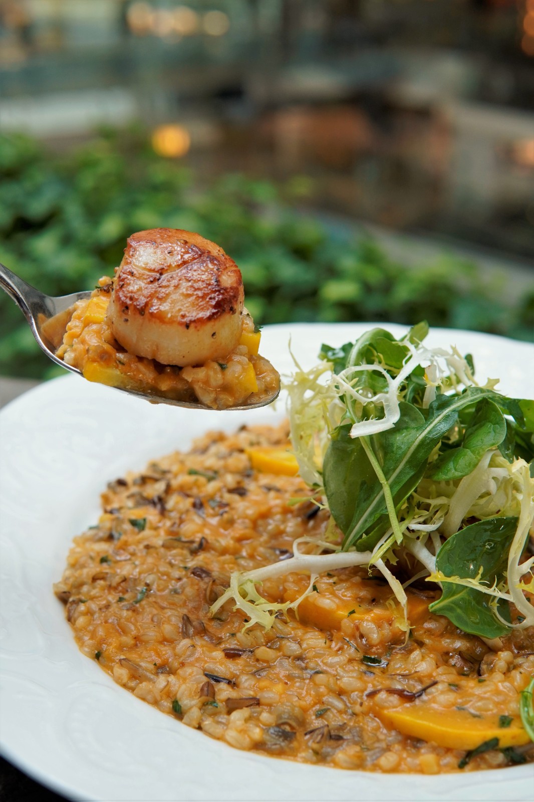 煎帶子意大利黃瓜有機糙米飯,HK$158。(僅限晚市供應)