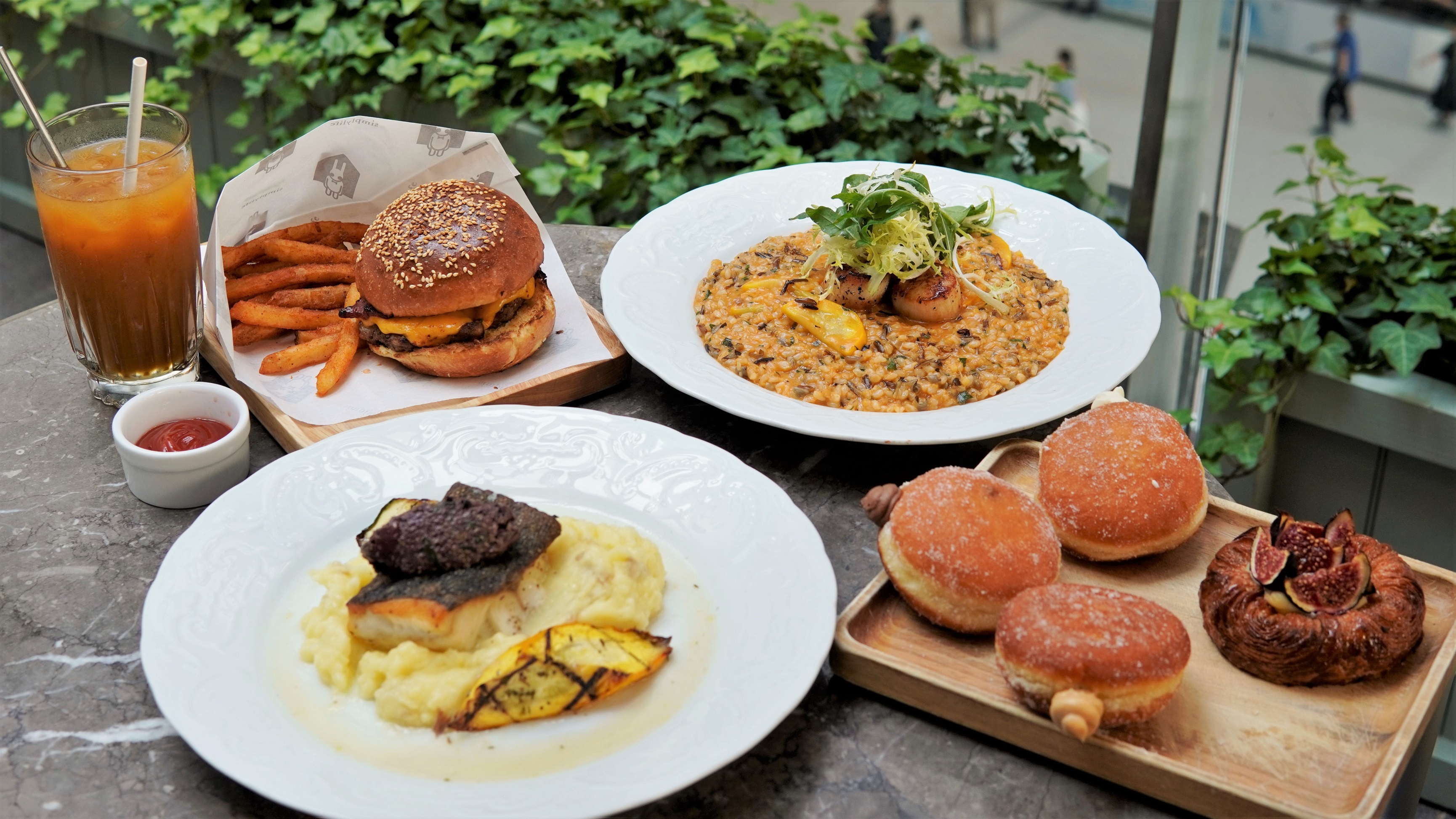 喜歡海鮮的食客,推介「燒黑鱈魚配薯蓉、燒意大利黃瓜及酸豆橄欖醬」,油香豐富的智利黑鱈魚肉質細嫩,外皮鹹香脆口,配上香滑軟綿的薯蓉,及伴碟的燒意大利黃瓜和酸豆橄欖醬添上清爽及酸甜味,濃而不膩。關注健康人士,推介「煎帶子意大利黃瓜有機糙米飯」,菜式選用營養價值高的有機糙米製作,粒粒分明的糙米配上爽脆的意大利黃瓜及鮮甜多汁的原粒香煎帶子,輕盈清爽。想品嘗店內自家製麵包,則要選「車打芝士煙肉牛肉漢堡伴香辣薯條」,6安士牛肉漢堡扒及鬆軟麵包均為餐廳自家出品,口感紮實,充滿牛脂香,加上金黃酥脆的香辣薯條,是下午茶理想之選。