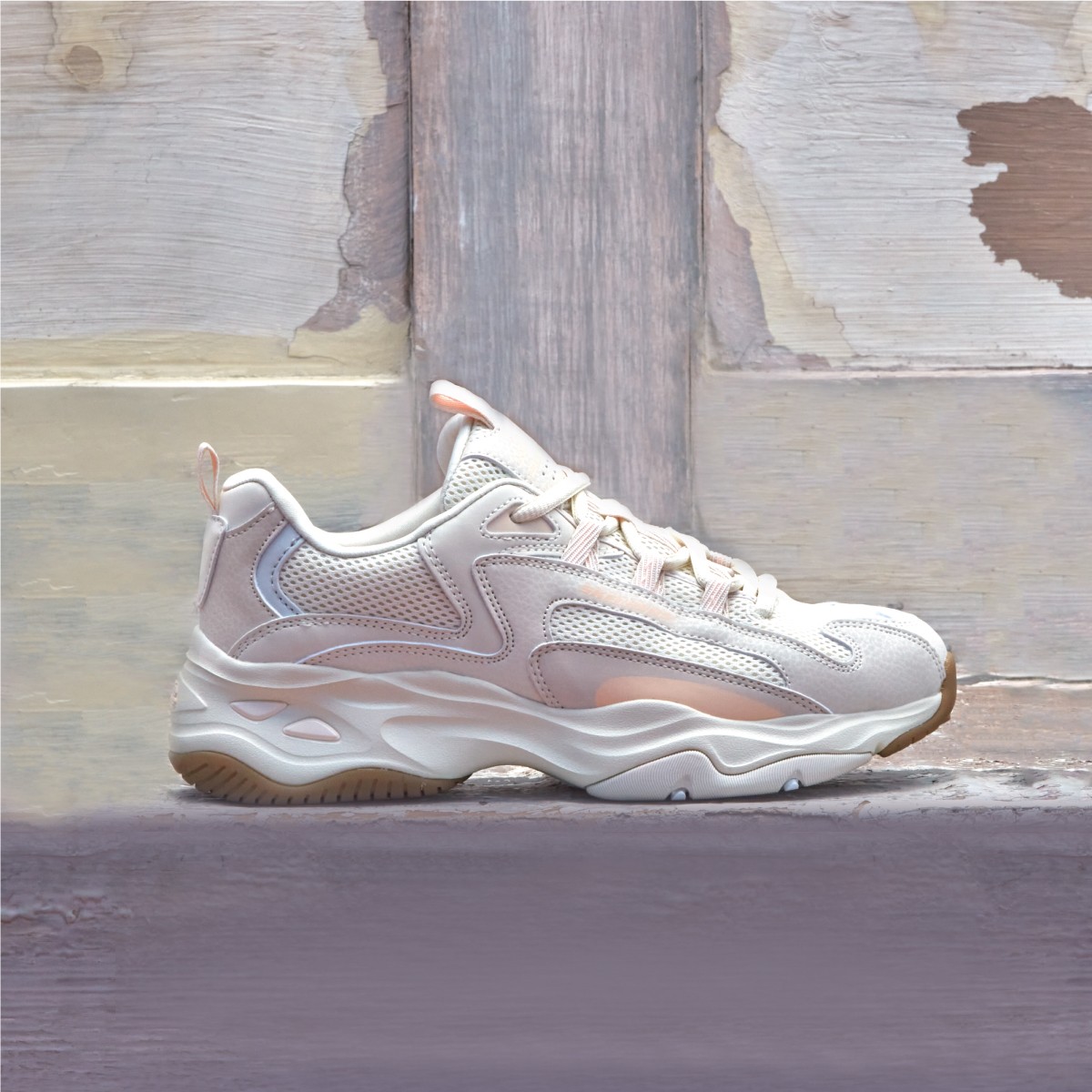 若覺得老爹鞋造型感及分量感十足,想有運動風又想為造型增添可愛感的女生,不妨選擇新推出的糖果色系老爹鞋。鞋面用上淡粉紅、淡藍色及淡紫、粉綠、白色等清新色調,並配合層次分明的混色設計。鞋側是醒目的閃電線條,部分款式更有裝飾性的棉繩作點綴,鞋款具復古潮流氣息,只須簡單配上貼身瑜伽褲或運動闊褲,便能為造型添上甜美率性元素。