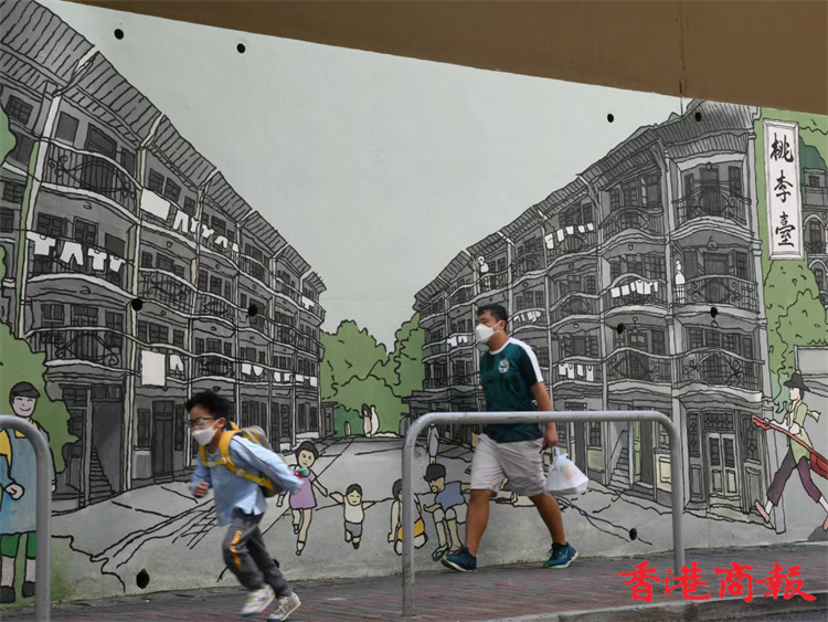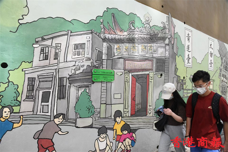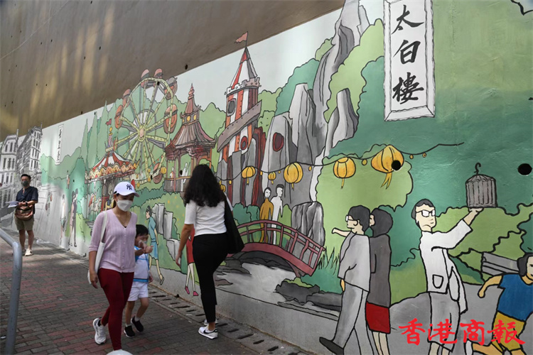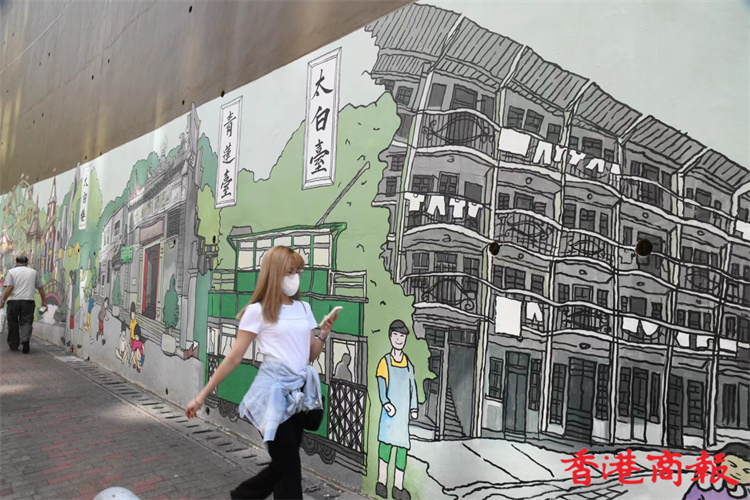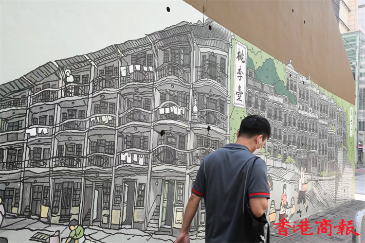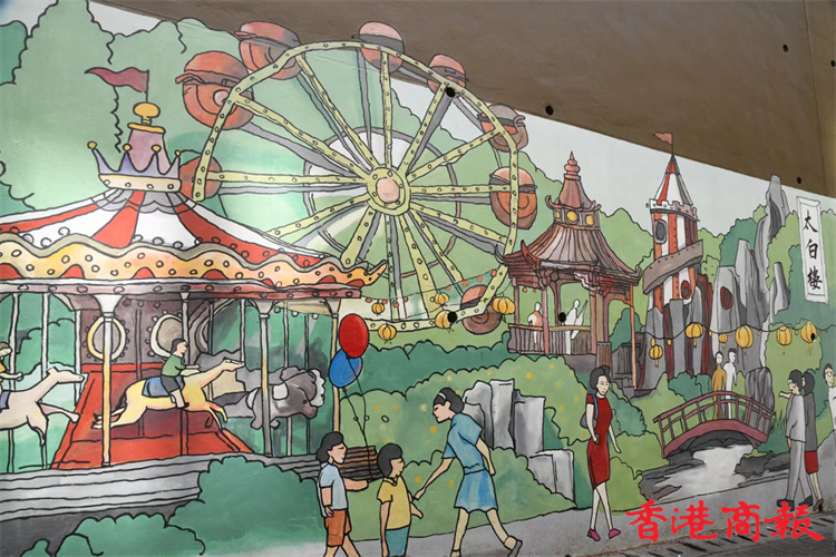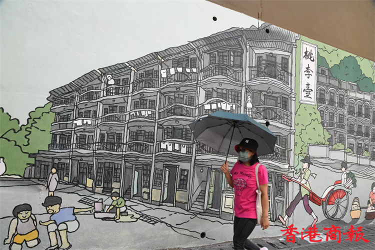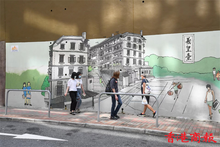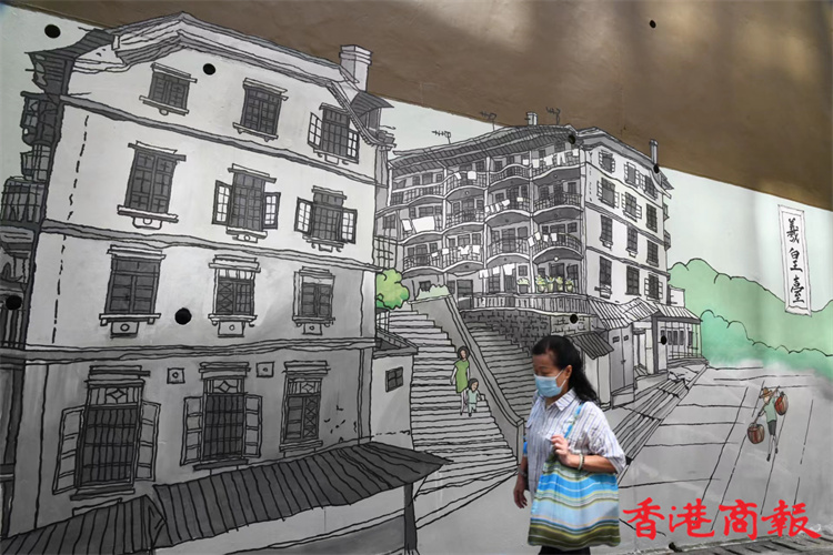 位於堅尼地城石山街的新壁畫近日終於大功告成。新壁畫以「西環七臺」歷史為主題,展現出昔日七臺的建築特色及當時香港生活面貌,七臺包括太白臺、羲皇臺、青蓮臺、桃李臺、學士臺、李寶龍臺和紫蘭臺。「西環七臺」畫功十分細緻,非常適合市民到來欣賞西環地區特色並「打卡」留念。 (攝影部蔡啟文攝)
