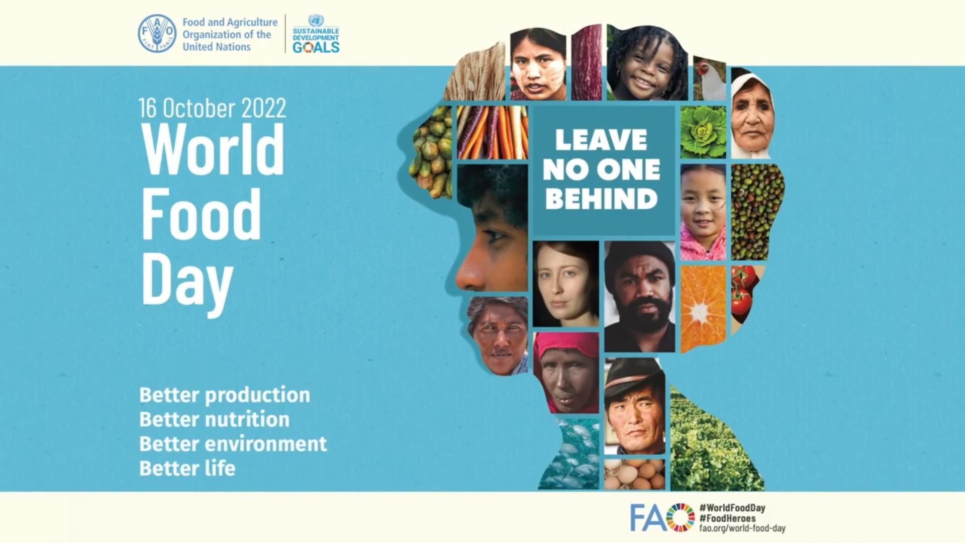 10月16日世界糧食日的主題是「更好生產、更好營養、更好環境、更好生活,不讓任何人掉隊。」我們需要建設可持續的世界,讓生活在世界各地的每一個人都能享用數量充足且有營養的食品,推動農業糧食體系轉型,從長期、包容性經濟增長和提高韌性的角度看待發展,建設更美好的世界。