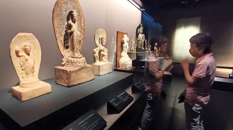 除了佛像外,館內還透過高清圖像、互動模型與文字說明,勾勒出亞洲佛教藝術的鮮明輪廓,藉與佛教藝術的連結和收藏藝術品的欣賞,為觀賞者提供了一趟心靈治癒之旅。(馮瀚文/攝)
