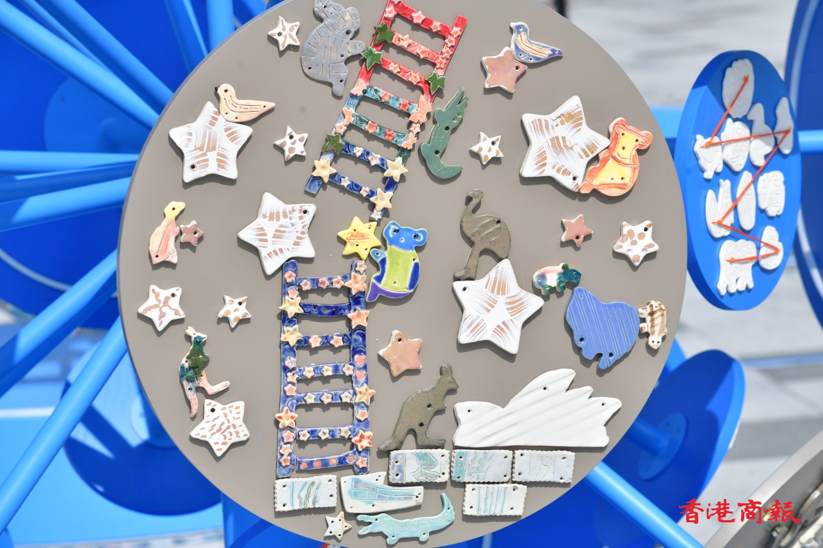 在日間漫步海濱,也可看見粒粒閃耀繁星。在西環堅尼地城卑路乍灣海濱長廊,現正擺設名為「我們的星空」藝裝置藝術展覽。藝術裝置由多塊星星形態的陶瓷片,與其他七彩陶瓷片組合而成一個個星球。