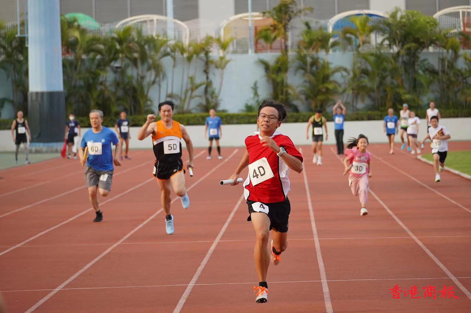 4 x 100接力賽最終由交通銀行代表及當區中學生組成的隊伍奪得冠軍;亞軍是由懲教署、廉政公署、葵青區議員、地區中學生組成的隊伍;季軍則由世界男子羽毛球雙打冠軍鄭昱閩、前中國女排國家隊隊長孫玥、香港馬拉松代表黎可基、香港男子800米紀錄保持者/現役消防員梁達威奪得。
