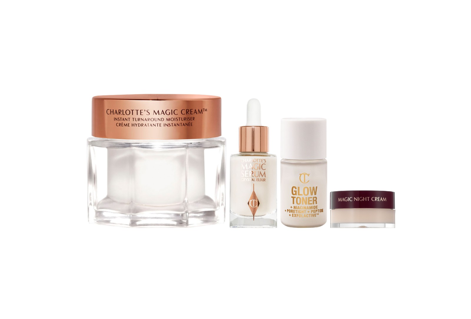 魔法護膚套裝(HK$750,價值HK$1150),包括了王牌產品魔法面霜,配方注入Magic 8護膚成分,能夠即時補水滋潤肌膚,適合單獨或妝前打底使用。套裝還有於早晚護膚程序可用的魔法光透柔膚液,用於調理肌膚,幫助後續保養的吸收,並有魔法水晶能量精華,配合魔法面霜一同作臉部按摩,使肌膚飽滿及顯露健康光澤。
