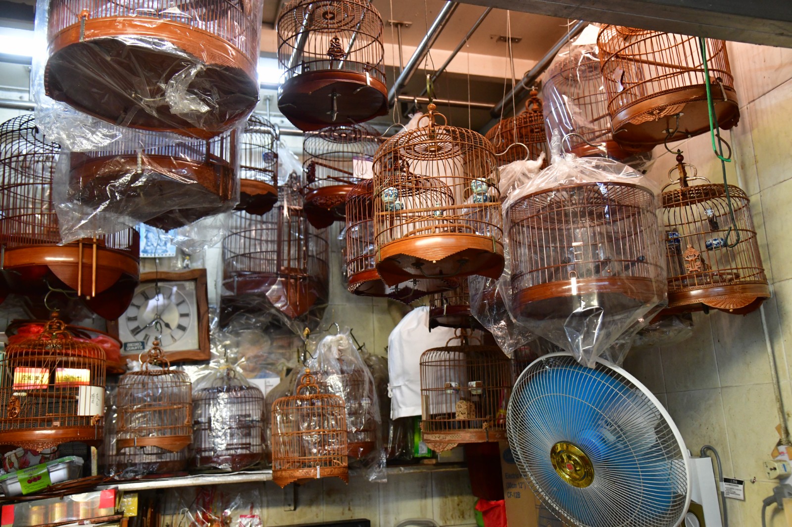 店內掛滿有待維修的雀籠。