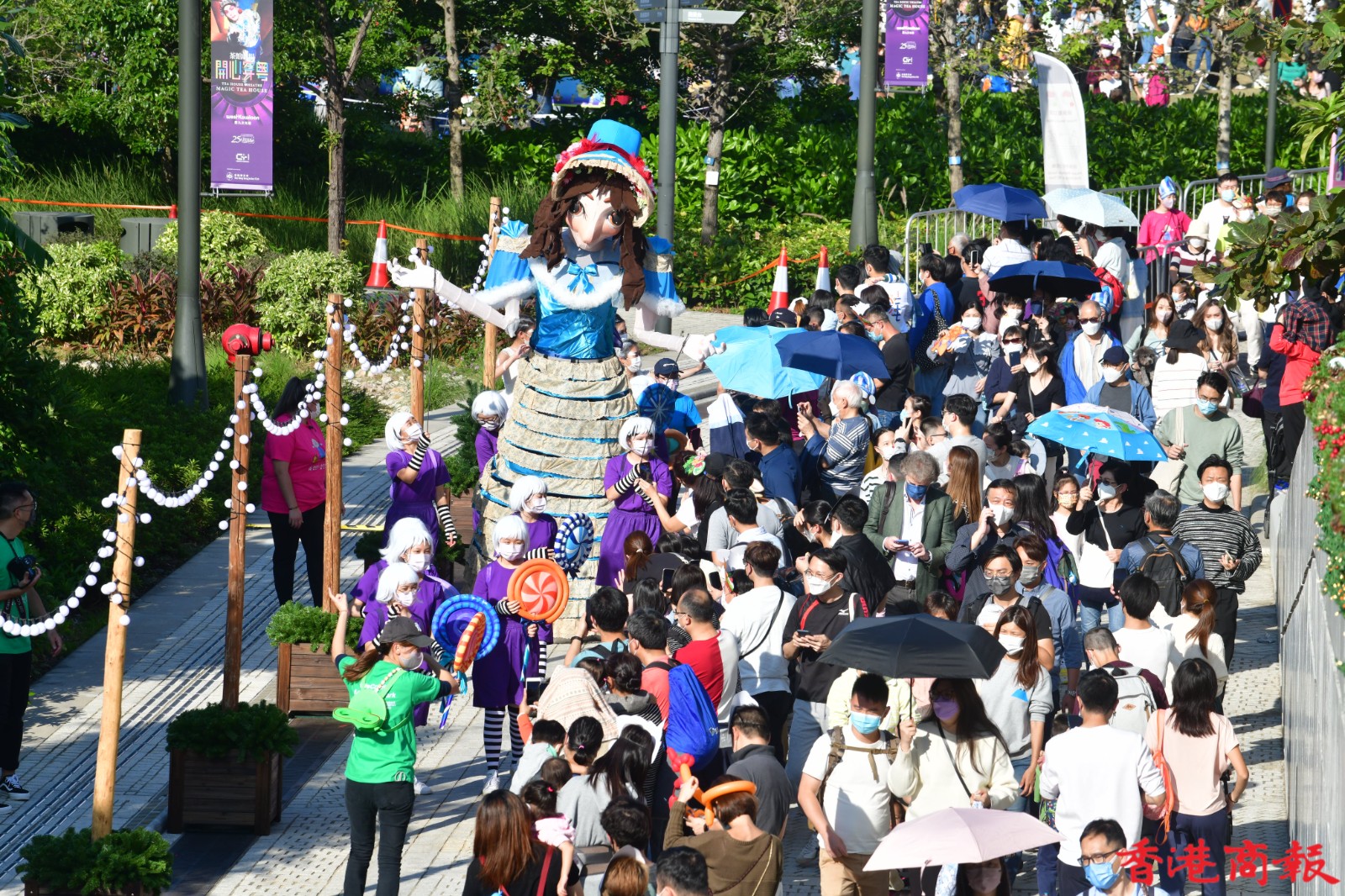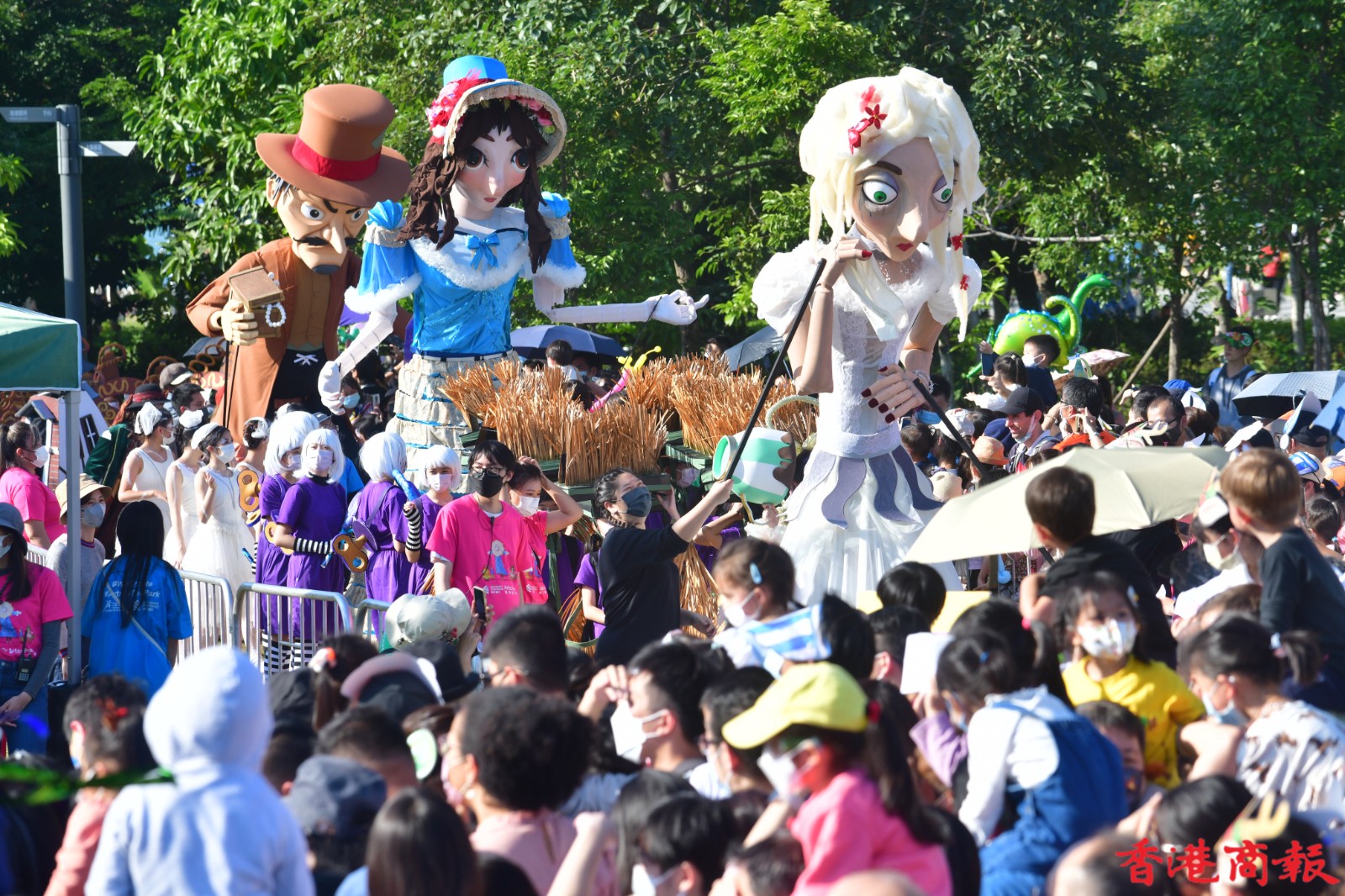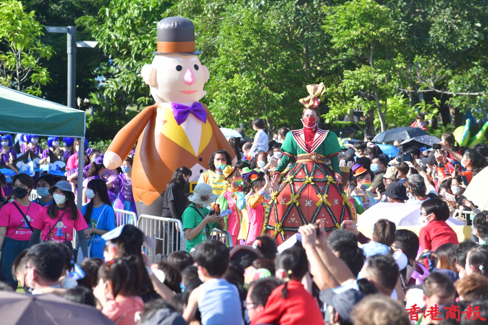 這班巨型木偶是渣打藝趣嘉年華的重點人物,今年嘉年華以「狄更斯的聖誕」為主題,吸引大批學生到場欣賞,透過不同的藝術表演、藝術攤位、故事劇埸等,預先感受聖誕節日氣氛,更一睹巨型藝術木偶遊走西九,也是難得一見。(記者 崔俊良 攝)