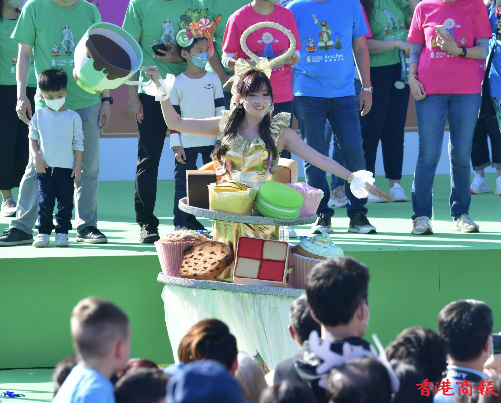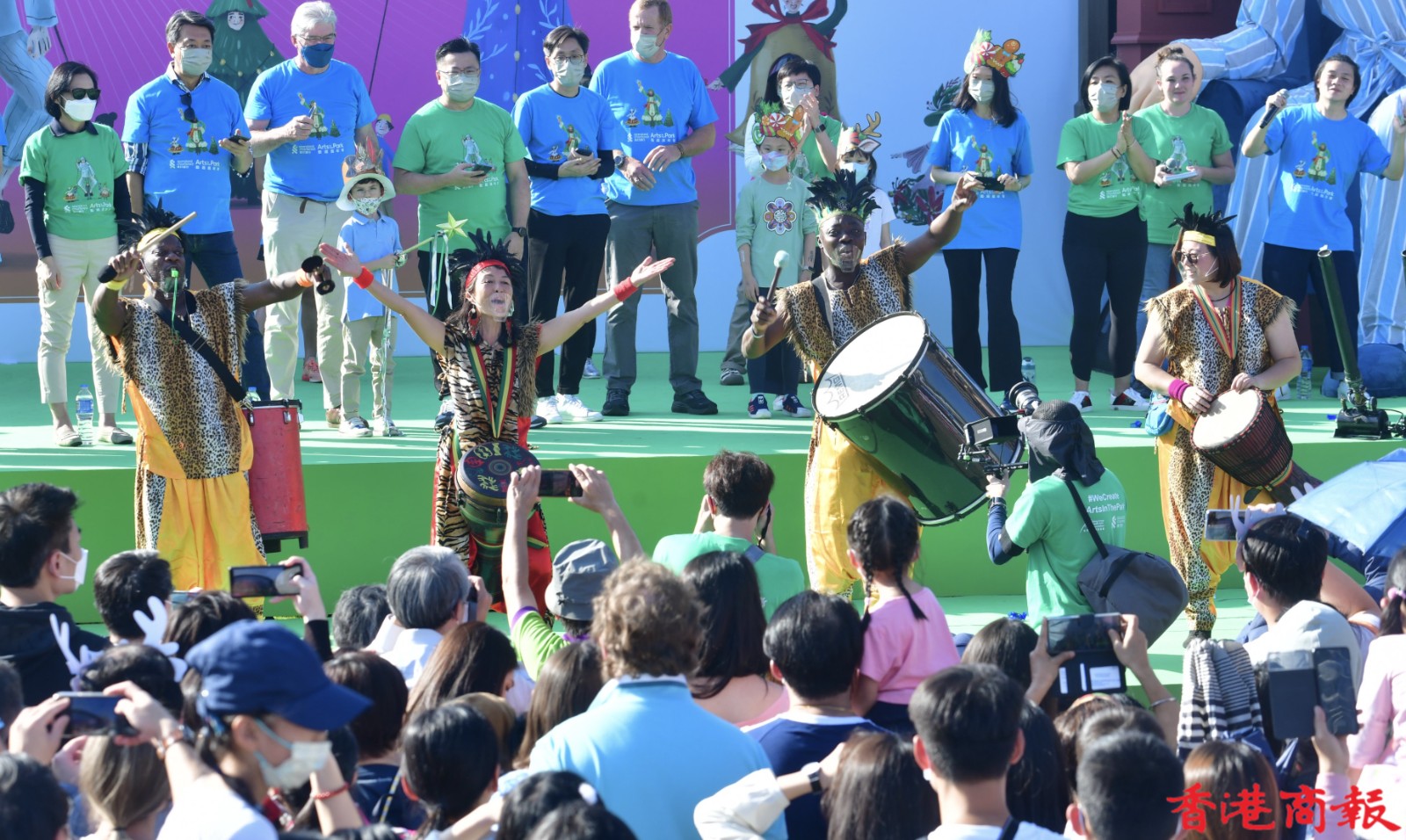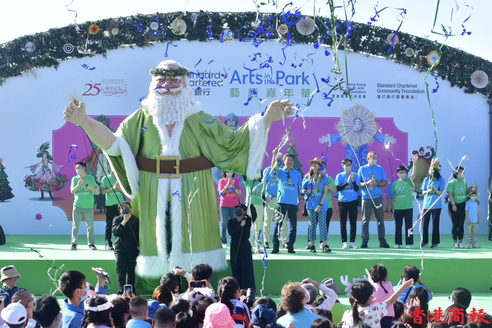 這班巨型木偶是渣打藝趣嘉年華的重點人物,今年嘉年華以「狄更斯的聖誕」為主題,吸引大批學生到場欣賞,透過不同的藝術表演、藝術攤位、故事劇埸等,預先感受聖誕節日氣氛,更一睹巨型藝術木偶遊走西九,也是難得一見。(記者 崔俊良 攝)