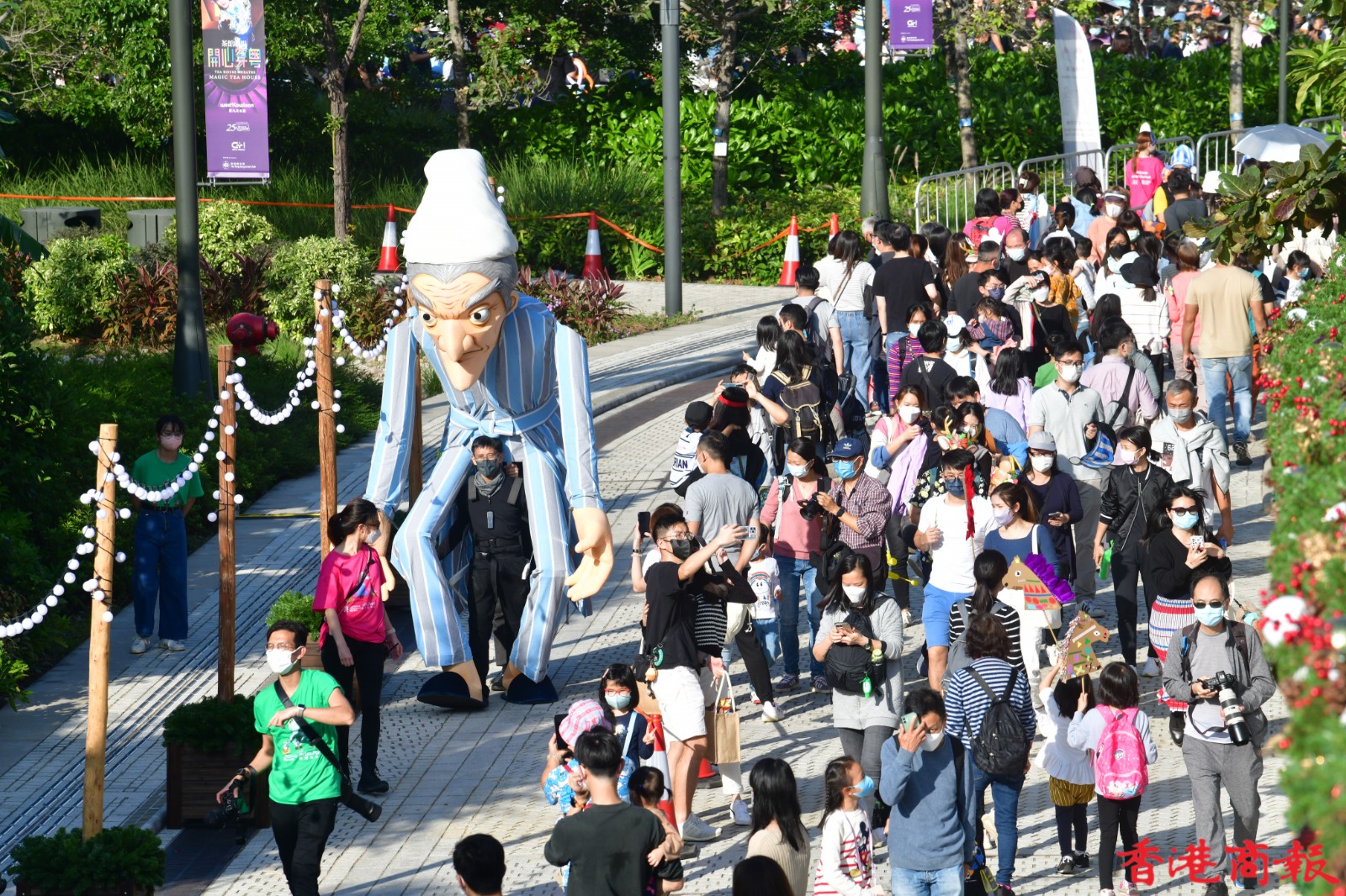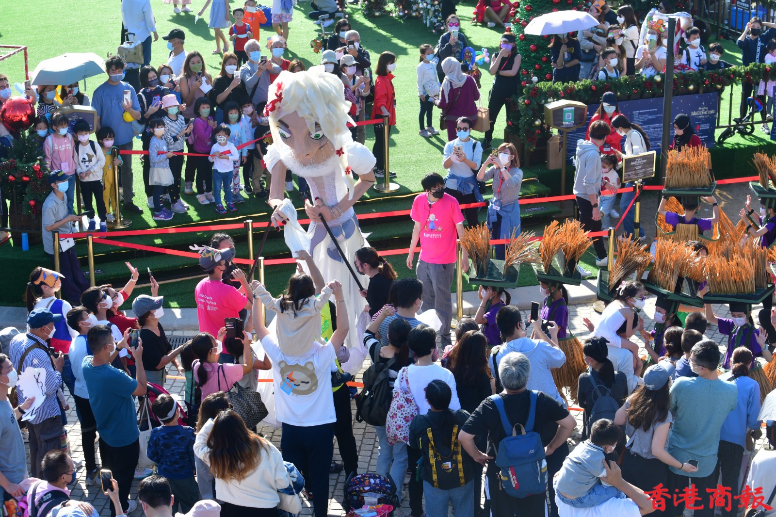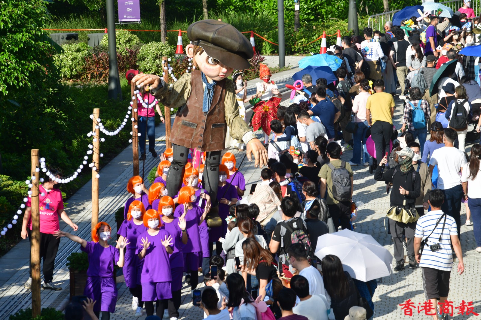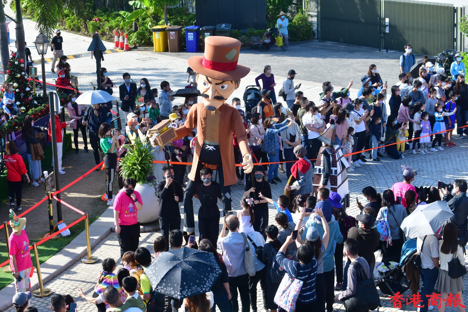 在疫情下,能夠近距離與巨型木偶相遇握手,也是一次令人難忘的木偶奇遇記。超過十個約四米高的巨型木偶,日前在西九文化區藝術公園內「出巡」,當中包括身穿聖誕衣飾的木偶,化身薑餅人的木偶,以至其他得意造型的木偶。它們如同巨人般撐著木桿,在西九公園內巡遊,與市民一家大小打成一片。