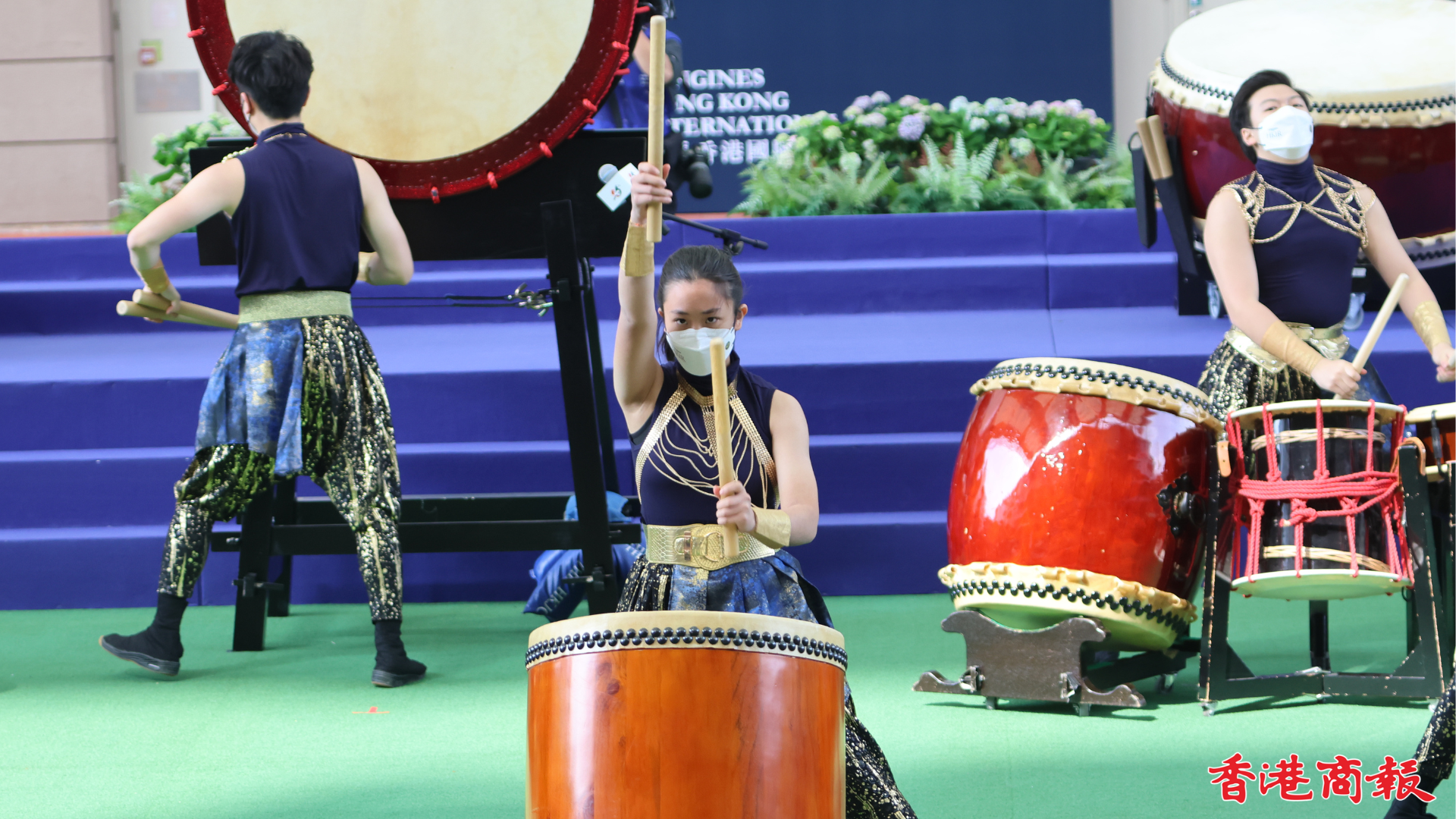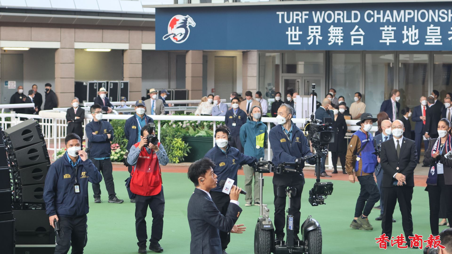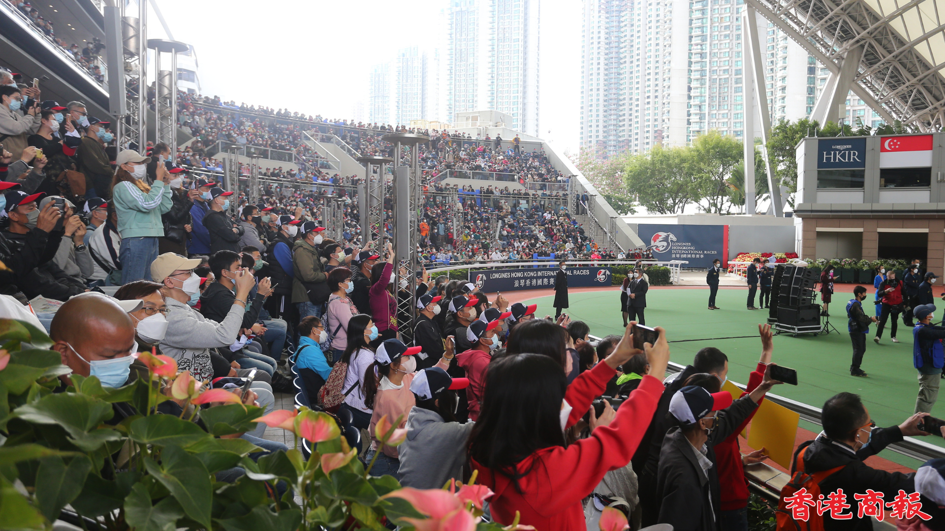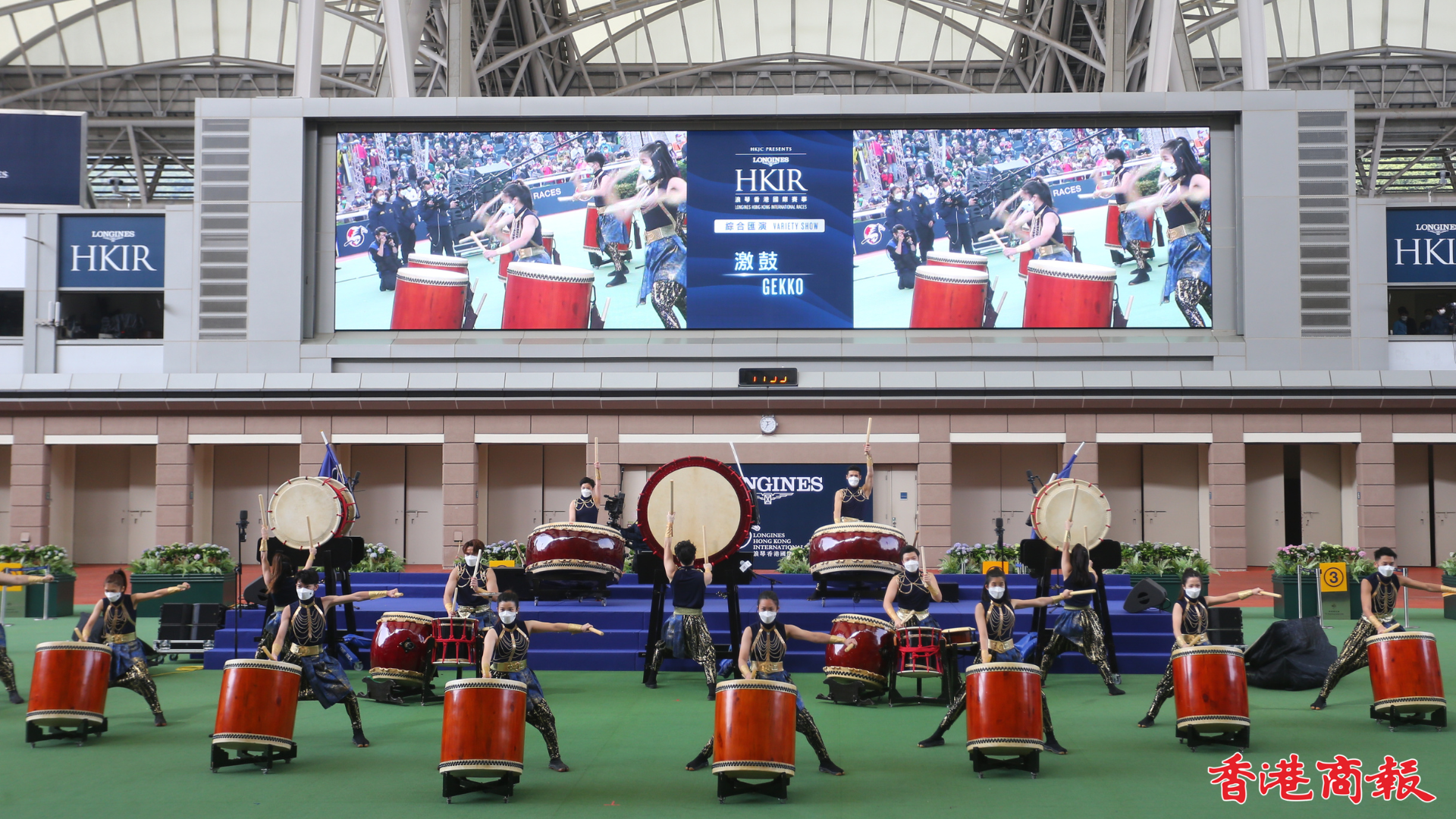 今日(11日)沙田馬場舉行2022香港國際賽日,開幕綜合匯演於上午11時30分在馬匹亮相圈舉行,打頭陣是來自本港的激鼓樂社上演太鼓表演,繼而就由著名歌手李克勤傾力獻唱多支名曲《紅日》、《飛花》及《球迷奇遇記》等,並帶動現場熾熱氣氛,為香港國際賽日揭開序幕。(記者 志誠 攝)