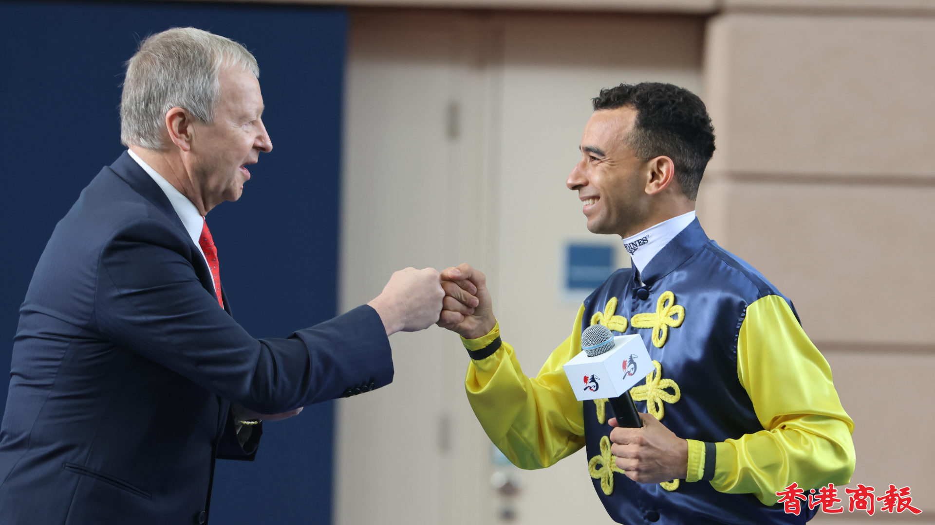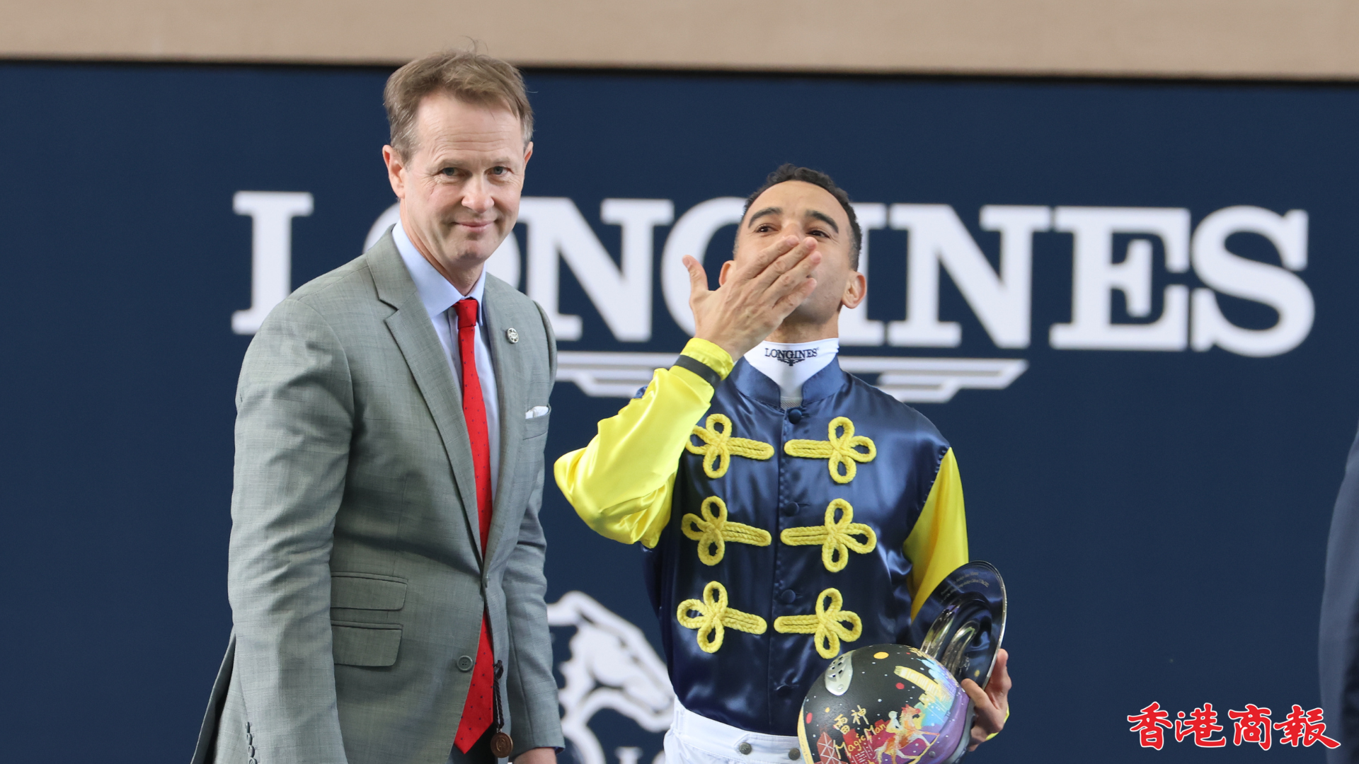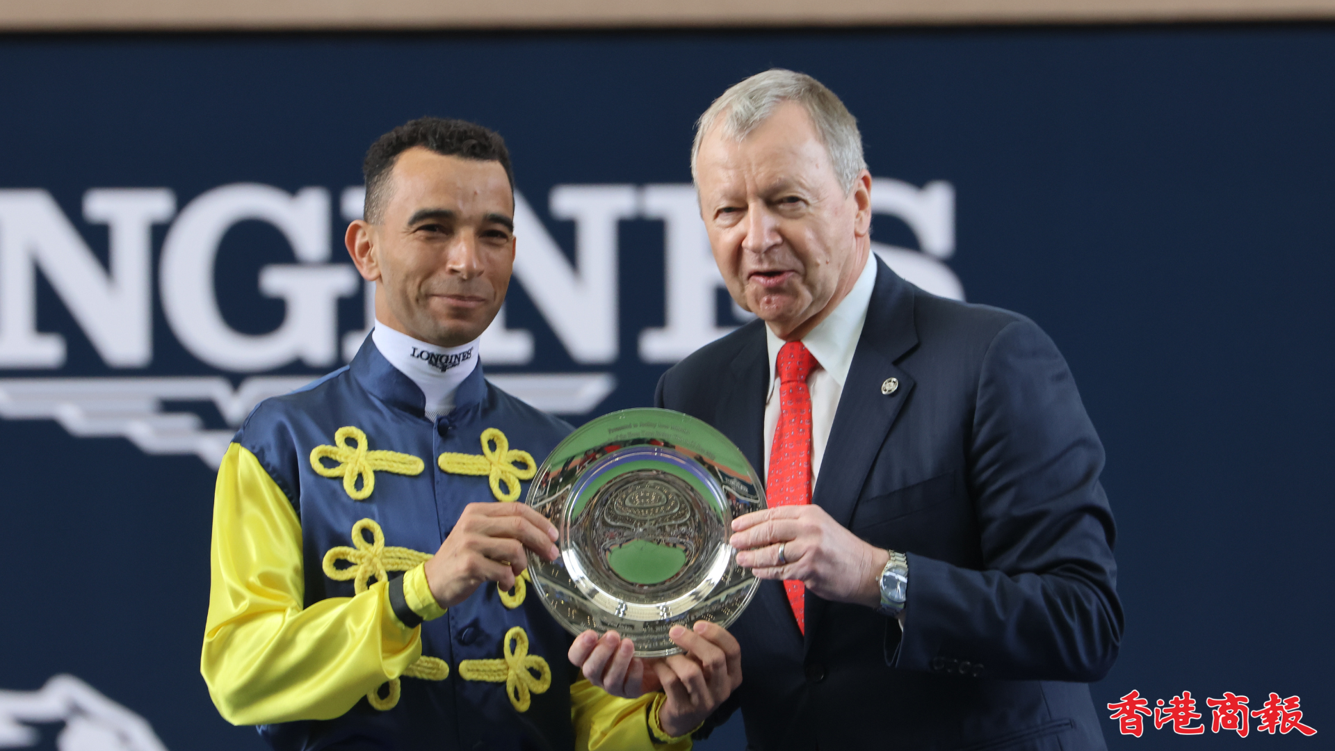 四屆香港冠軍騎師莫雷拉(雷神)將於今日(11日)國際賽日跑畢後離港,馬會特別在第一場賽事開跑前舉行歡送儀式,行政總裁應家柏聯同賽馬事務執行總監夏定安在馬匹亮相圈向雷神頒贈紀念銀碟及紀念頭盔,以表揚他在賽馬運動的巨大成就。