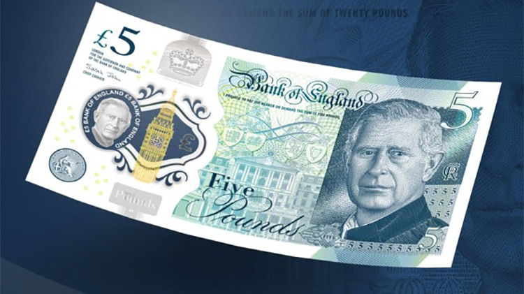 英國央行今天(20日)公布了帶有國王查理斯三世頭像的新版英鎊紙幣設計圖案,面值包括5鎊、10鎊、20鎊和50鎊。這些紙幣預計在2024年年中開始流通。