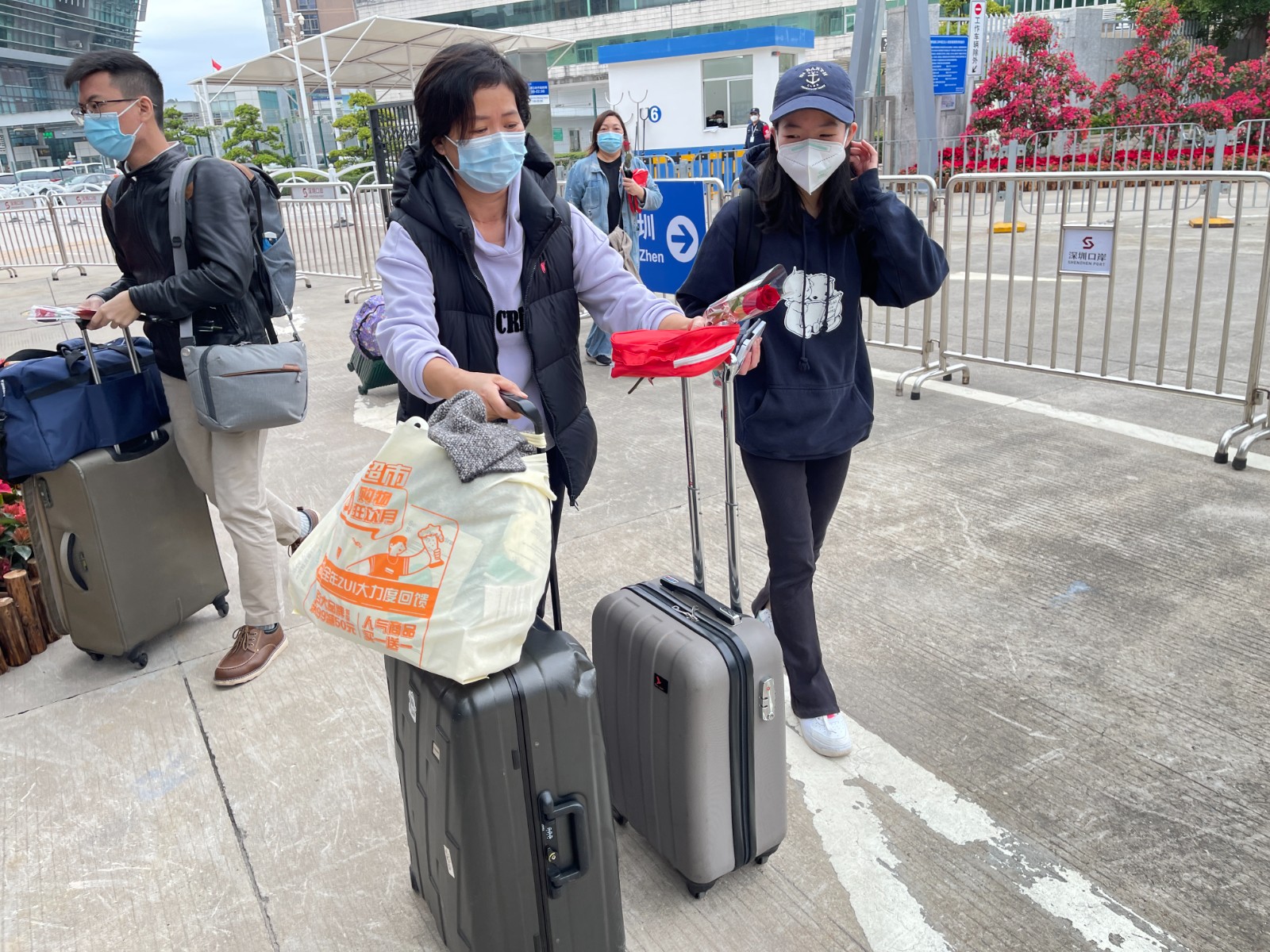 福田口岸門口還有不少手捧鮮花等待家人,據女士介紹,她和男朋友分隔深港兩地,已經兩年時間沒有見到面了。(讀特記者 張鈴佳 曾俊 吳劍雯 見習記者 徐樂釗)