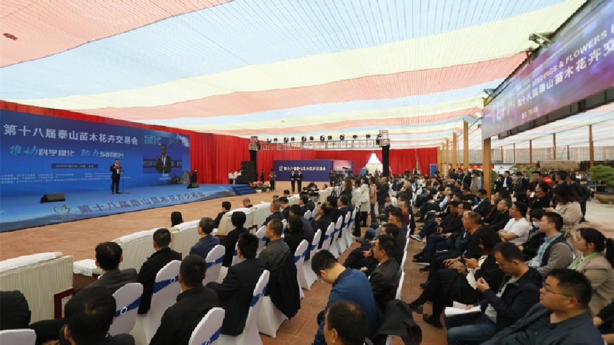 4月27日上午,第十八屆泰山苗木花卉交易會於泰安市泰山區邱家店鎮泰山國際花木城開幕。