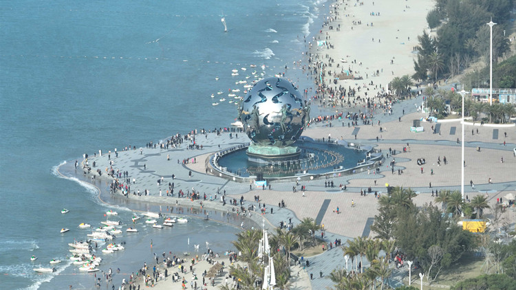 頂圖:遊客在廣西北海十里銀灘景區遊玩。新華社資料圖