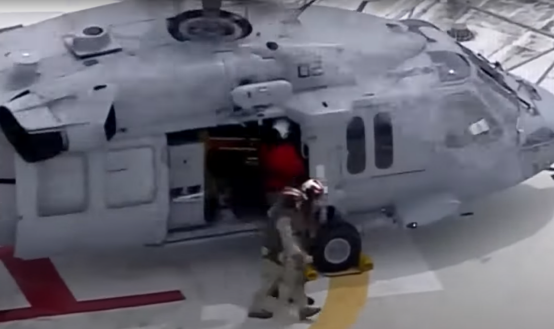 頂圖:彈射出艙墜海的飛行員被送往醫院接受檢查(美國邁阿密地方電視台WPLG視頻截圖)
