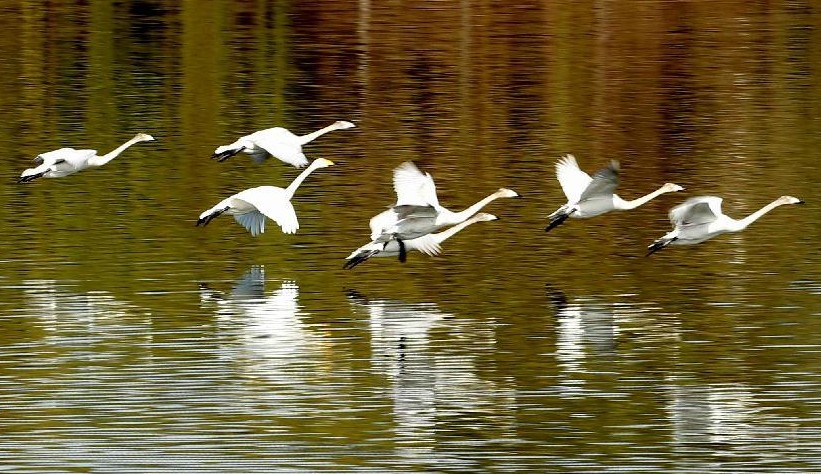 進入冬季,大批白天鵝從西伯利亞遷徙到河南省三門峽市黃河濕地棲息越冬,三門峽庫區成為黃河上的“天鵝湖”。隨著黃河濕地生態環境的不斷改善,到三門峽庫區越冬的天鵝數量逐年增加。 新華社記者 朱祥 攝