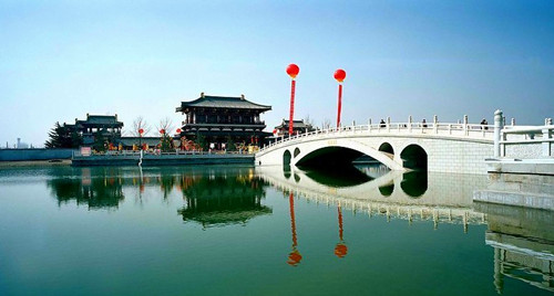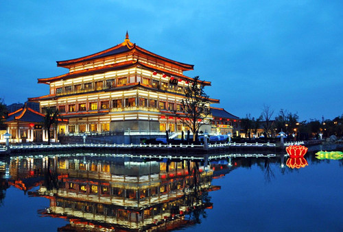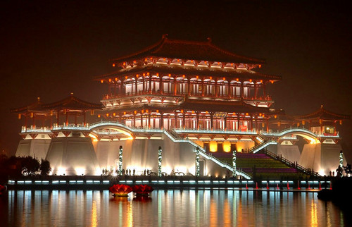 大唐芙蓉园位于古都西安大雁塔之侧,占地1000亩,其中水面300亩,总投资13亿元,是西北地区最大的文化主题公园,建于原唐代芙蓉园遗址以北,是中国第一个全方位展示盛唐风貌的大型皇家园林式文化主题公园。早在历史上,芙蓉园就是久负盛名的皇家御苑。 今天的大唐芙蓉园建于原唐代芙蓉园遗址上,以“走进历史、感受人文、体验生活”为背景,展示了大唐盛世的灿烂文明。