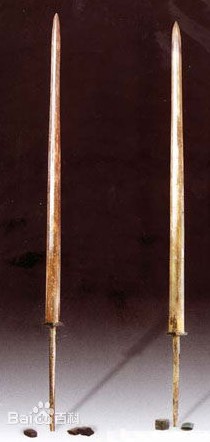 从二号坑出土的青铜剑,长86厘米剑身上有8个棱面,极为对称均衡 。