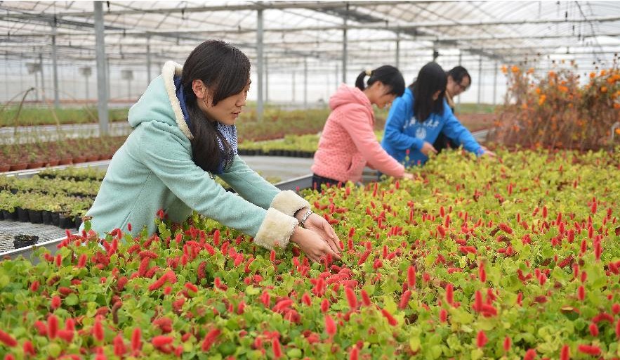 12月9日,几名学生在上海交大“浦江绿谷”低碳农业实践基地为鲜花去除杂草。