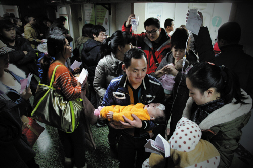 昨日早6时,记者在大医二院一楼的候诊大厅里看到,已经有不少患者在排队等待就诊。一名正在取药的患者告诉记者,他是因为感冒发热来医院看病,当天凌晨他发烧到了39摄氏度,全身酸疼,而且,这种高热已经反复好几次了。他早上5点多就来医院了,当时大厅里已经有不少人了。市民章先生带着4岁的女儿正在排队,他告诉记者,他自己感冒才好,孩子又开始感冒。孩子虽然精神状态还可以,但已经连续3天发热到39摄氏度,他的妻子也感冒发烧在家,他害怕孩子烧成肺炎就带着她来医院,没想到去了好几家医院都要排队,“上周日就听一个朋友说,带着发烧的孩子去一家医院的儿科看病,结果上午10点左右到医院发现,当天的门诊就排满了。”