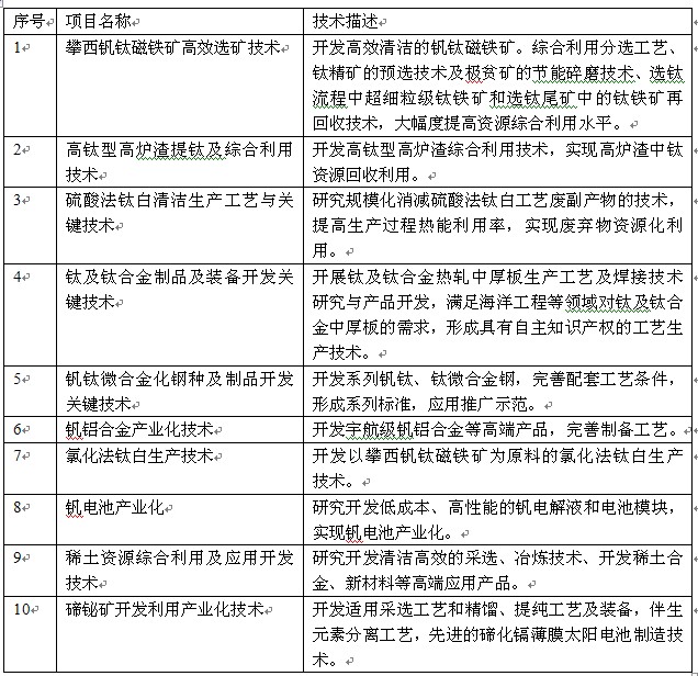据了解,攀西实验区是目前国内唯一一个资源综合利用实验区,是国内最大的钒钛产业基地、重要的稀土生产基地和铁矿石资源保障基地,有着全国最大的碲铋独立原生矿带。2013年3月经国家发改委批准设立。据悉,攀西资源开发面临的突出问题是核心技术瓶颈制约,资源开发利用水平不高,铁资源综合利用率约70%,钒资源综合利用率约47%,钛资源综合利用率仅14%,蕴藏的巨大经济价值和重要的战略意义未得到充分发挥。此次会议就攀西实验区首批10个重大科技攻关项目做了发布,这10个项目将采取公开招标方式,吸引国内外有实力的科研机构和开发企业参与。招标项目也将纳入省级重大科技攻关计划和相关专项扶持范围,省级财政将给予支持。