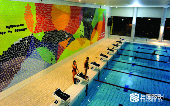 据了解,上官老师结合自身经历及多个国家的艺术考察后,选定用“瓷”来体现整个设计作品的灵魂。该作品设计元素为 “鱼”和“水”,由5500片大小不一形状不一的高温陶瓷组成,尺寸为6.0米*20.06米。画面由56条鱼共体组成,寓意中国56个民族共同的祝福。因鱼与“余”同音,意味着美好,衣食有余的心理愿望。此外,在游泳馆里,鱼的形象还传递着人在水中自由娱畅、无比愉悦的心情。