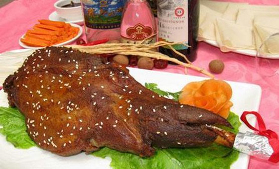 烤羊腿是内蒙古的主要特产美食之一,也是他们招待宾客的一道佳肴名菜。烤羊腿从烤全羊演变而来,色美、肉香、外焦、内嫩、干酥不腻,被人们赞为“眼未见其物,香味已扑鼻”。