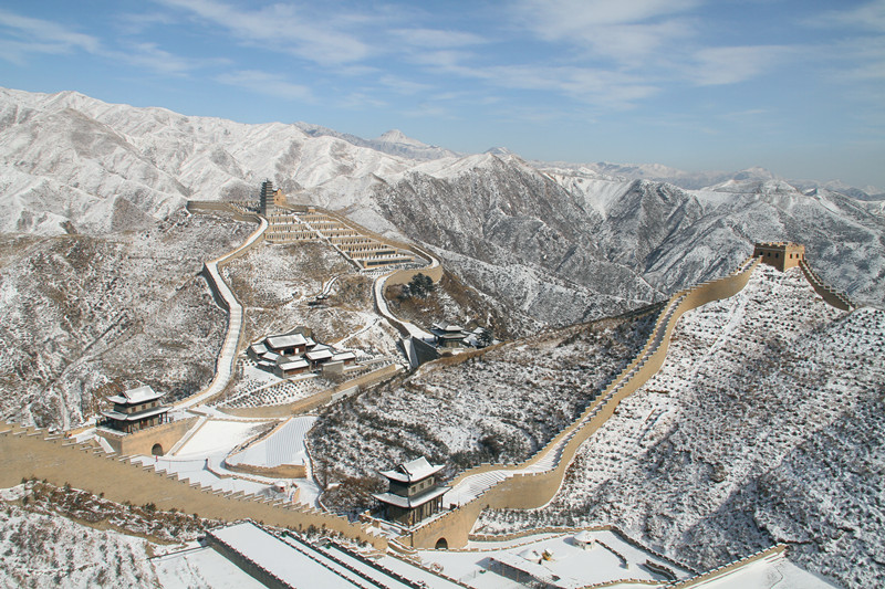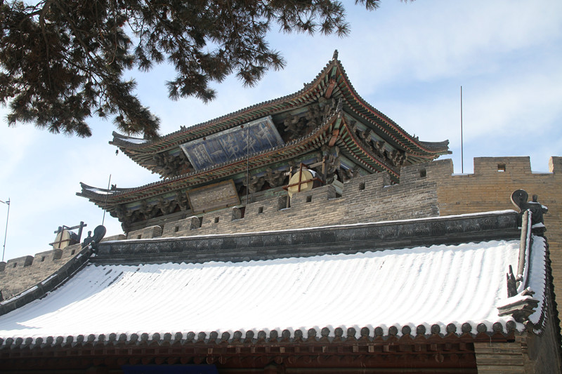 一个人独守一座千古雄关,心中油然而生敬畏之情。除夕的雁门关褪去了往日的喧嚣,高远的蓝天,明媚的阳光,周遭是深层的静默。我在景区宿舍独坐,随手拿起一本小说来捧读,想静下心来,小说的故事俗套而冗长。面对一座三千年的古关隘,任何的小说故事都显得多么的苍白。雁门关在这无边的静谧中让人我莫名的心绪不宁,我把目光投向窗外,静听屋外杨树梢上喜鹊窝里的叽喳叫声,除夕的雁门关仿佛在召唤我的到来。背起相机走出来,我要为雁门拍几张节日的靓照。和煦的阳光暖暖的照耀,眼前的宁边楼静静肃立,庄严肃穆。