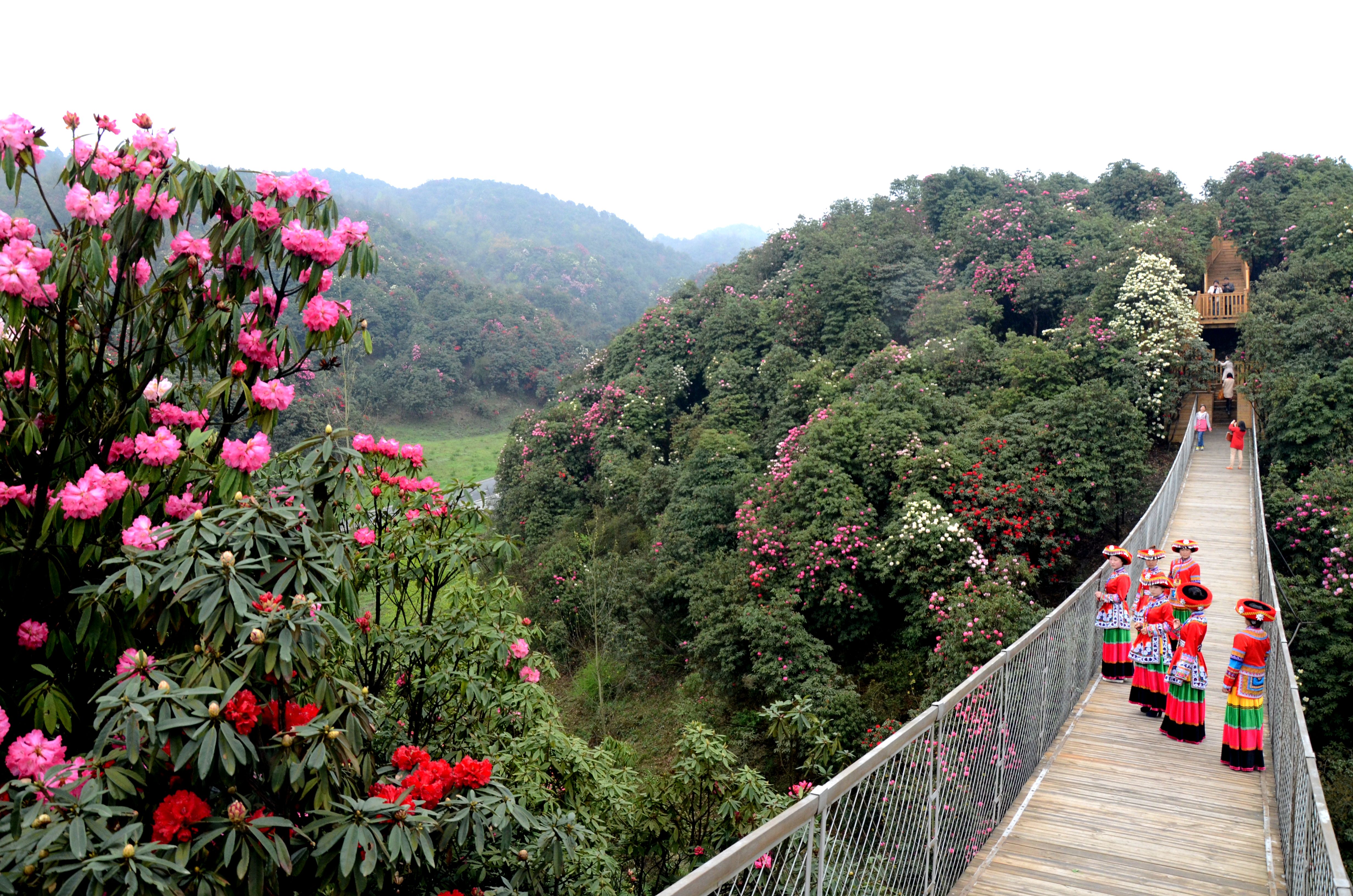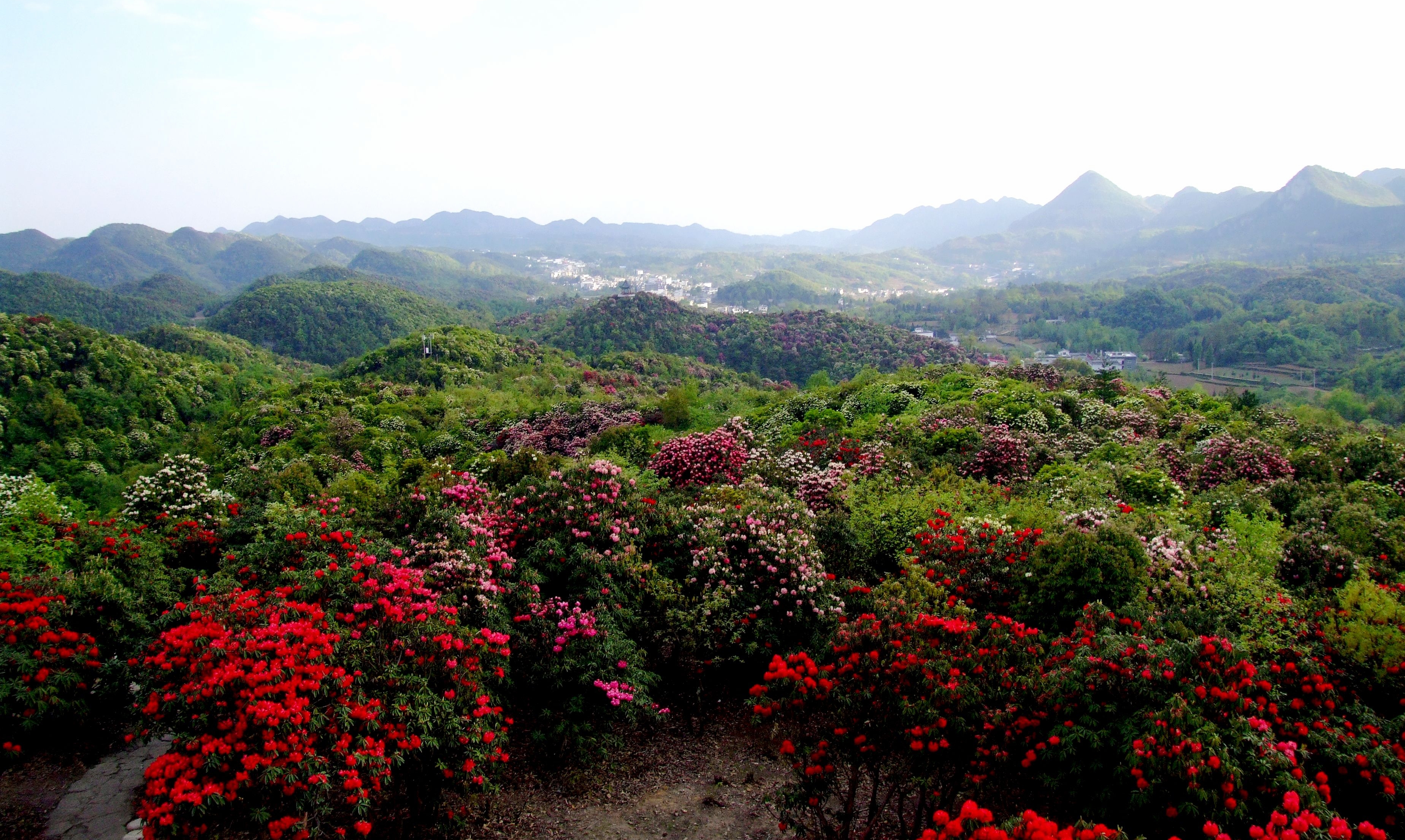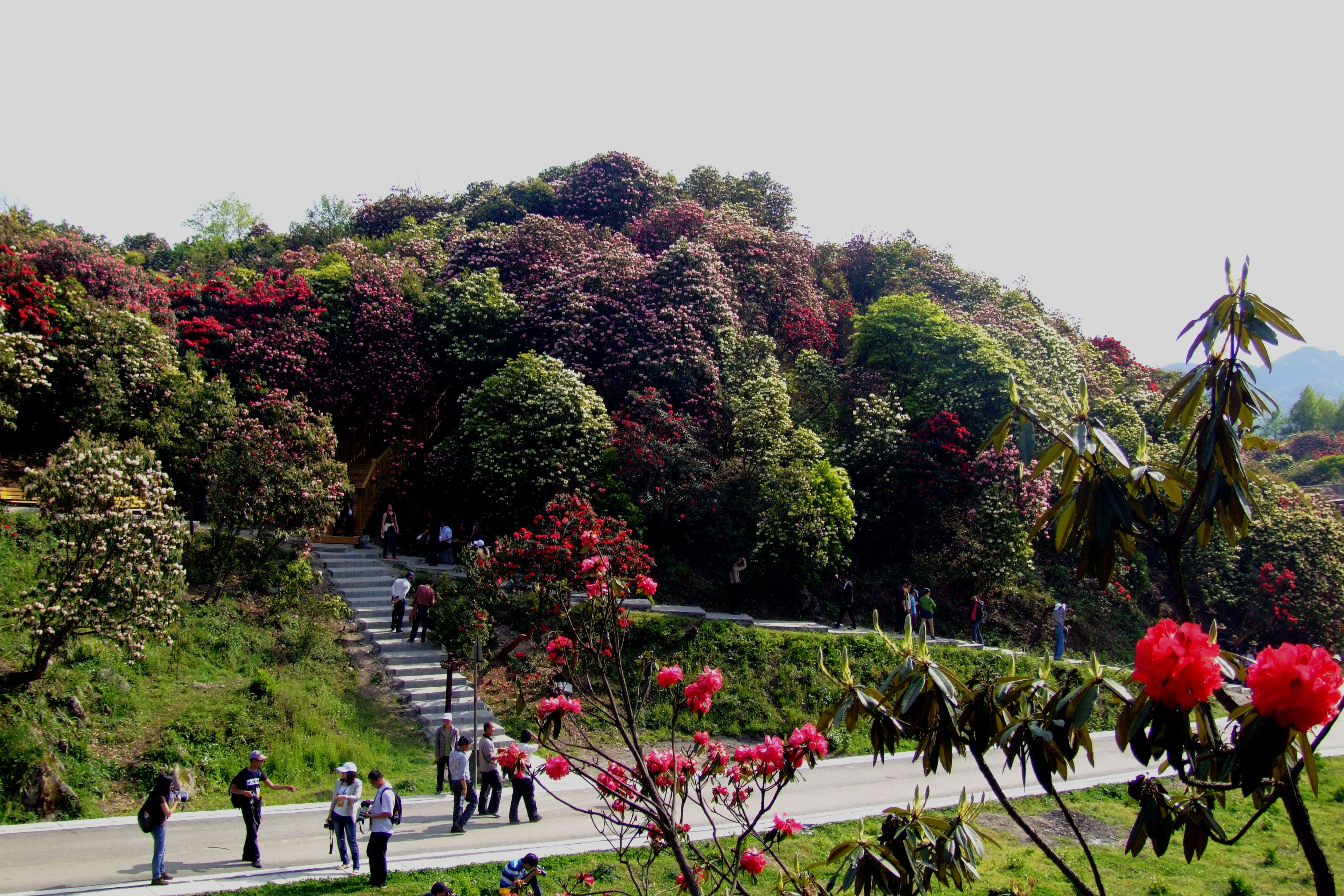 在延绵50余公里宽1.2-5.3公里的丘陵地带汇集了近20多种大小不等,色彩芳香各异的杜鹃花。每年3、4月份是盛花期,满山遍野绿花似雪球;有彩红、淡红、桃红、紫红、淡紫、彩黄、淡黄、雪白、乳白等。其花色品种之多,分布之密集,美学价值、观赏价值之高,艺术感染力之强,实属世界罕见。