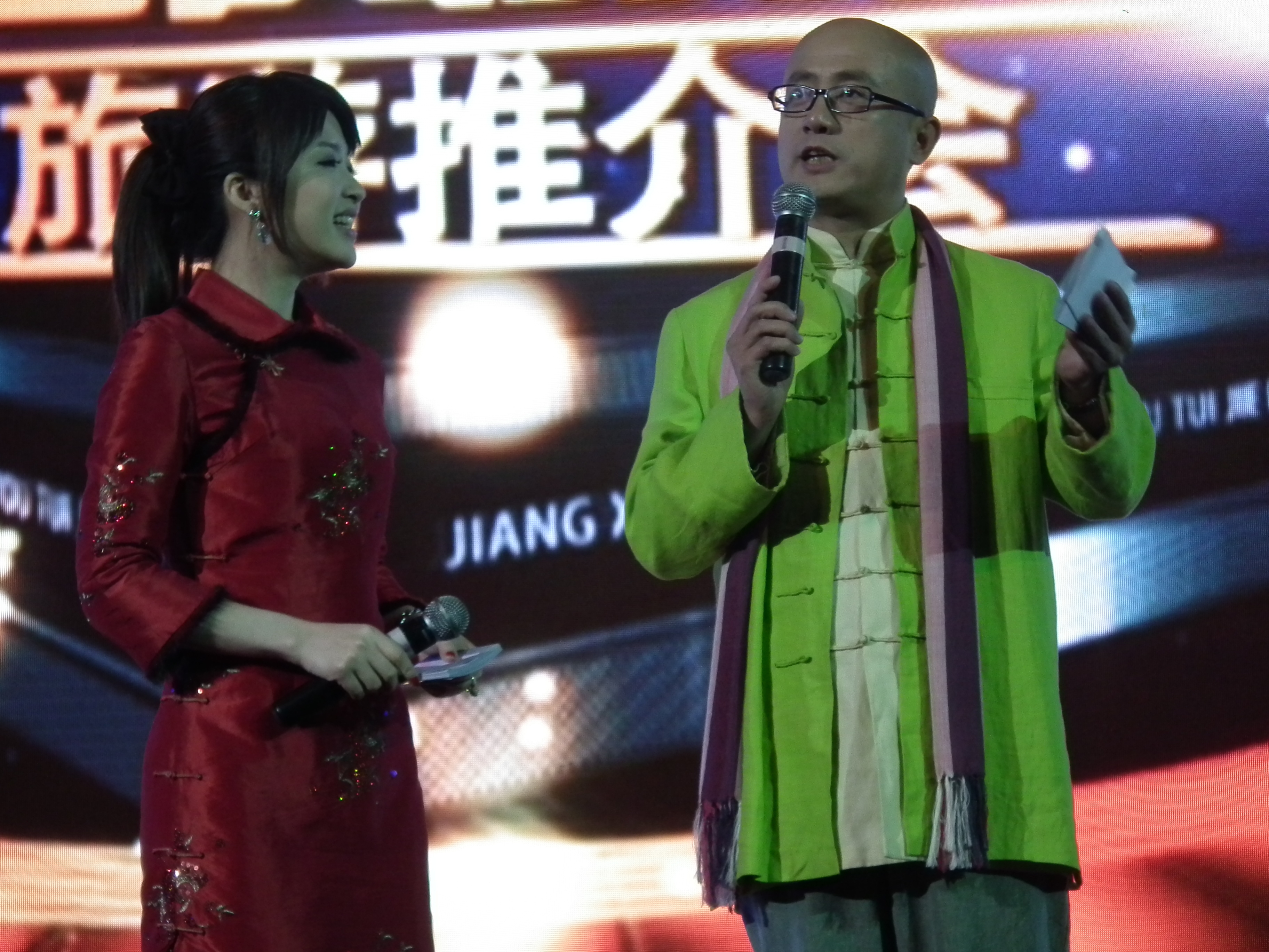 台湾东森主播陈海茵和江西电视台著名主持人廖杰主持“江西风景独好旅游推介会”。记者郭美勤摄