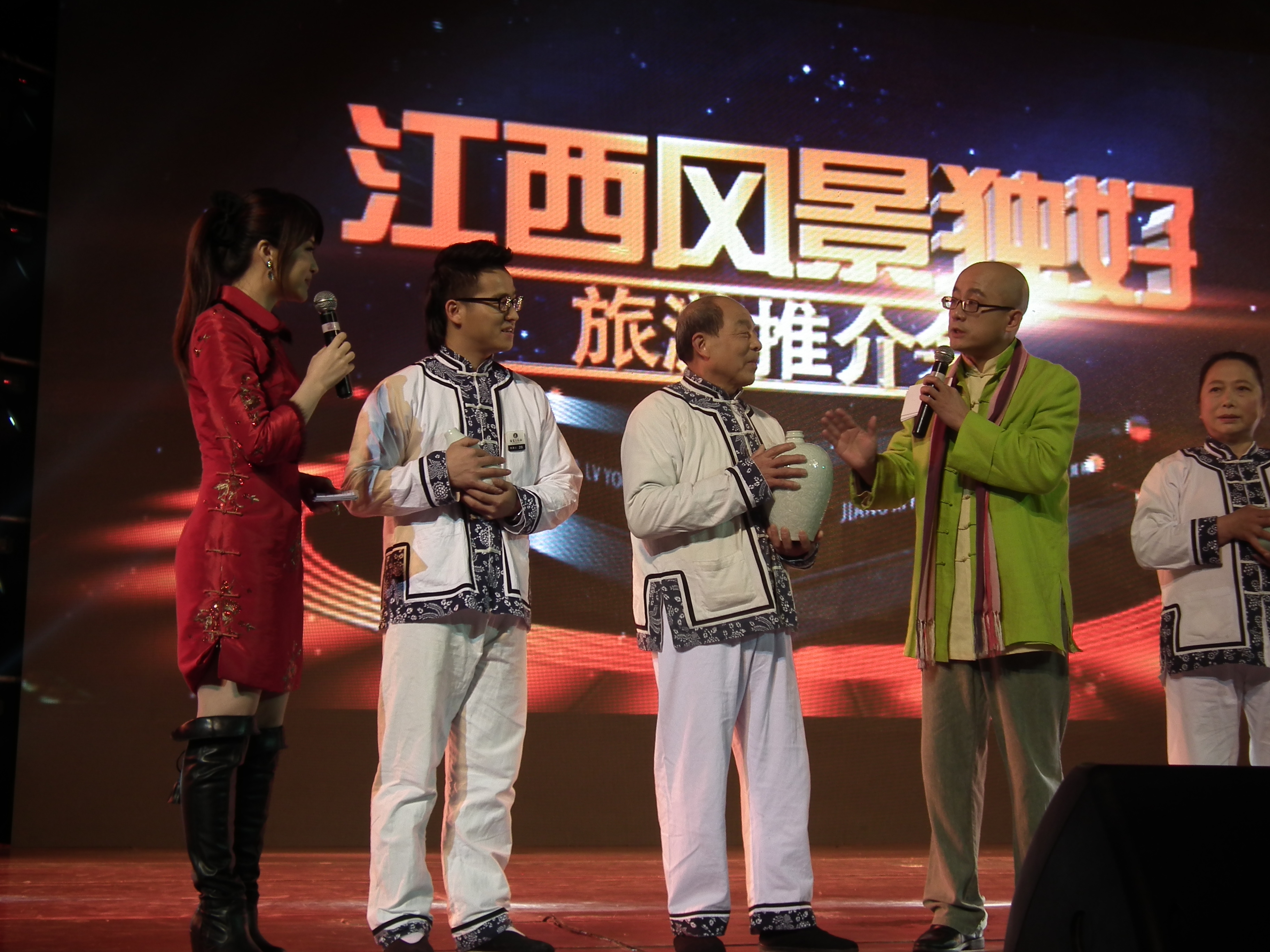 除了短片的播放外,现场还穿插了对江西非物质文化遗产传承人的采访、茶艺表演、祈福仪式、鄱湖渔歌等。